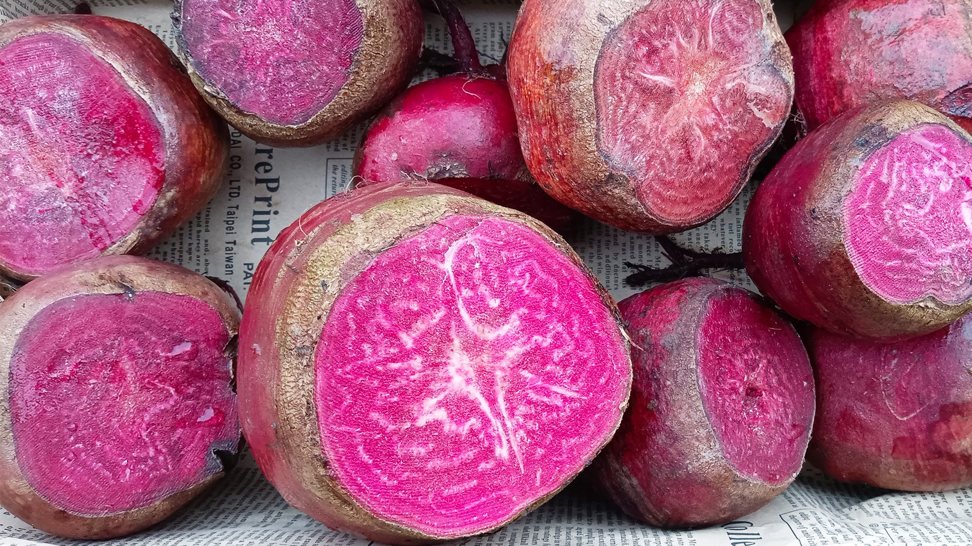 横枕農園では「デトロイト」という芯まで赤いビーツを栽培しております。 栽培時に土壌に入れるのは地元の畜産農家さんからいただく豚糞堆肥と鶏灰のみ。 農薬・化学肥料不使用で栽培しています。 ビーツは、生でも加熱してもおいしく食べられますが、火を通す場合は皮を剥かずに茹でることで色や食感を楽しむことができます。また、ピクルスやジュースにすると、保存性や飲みやすさがアップします。さらに、ボルシチやカレーなどの煮込み料理にすると、深い味わいを楽しむことができます。デザートにすると、甘みと酸味が引き立ちます。