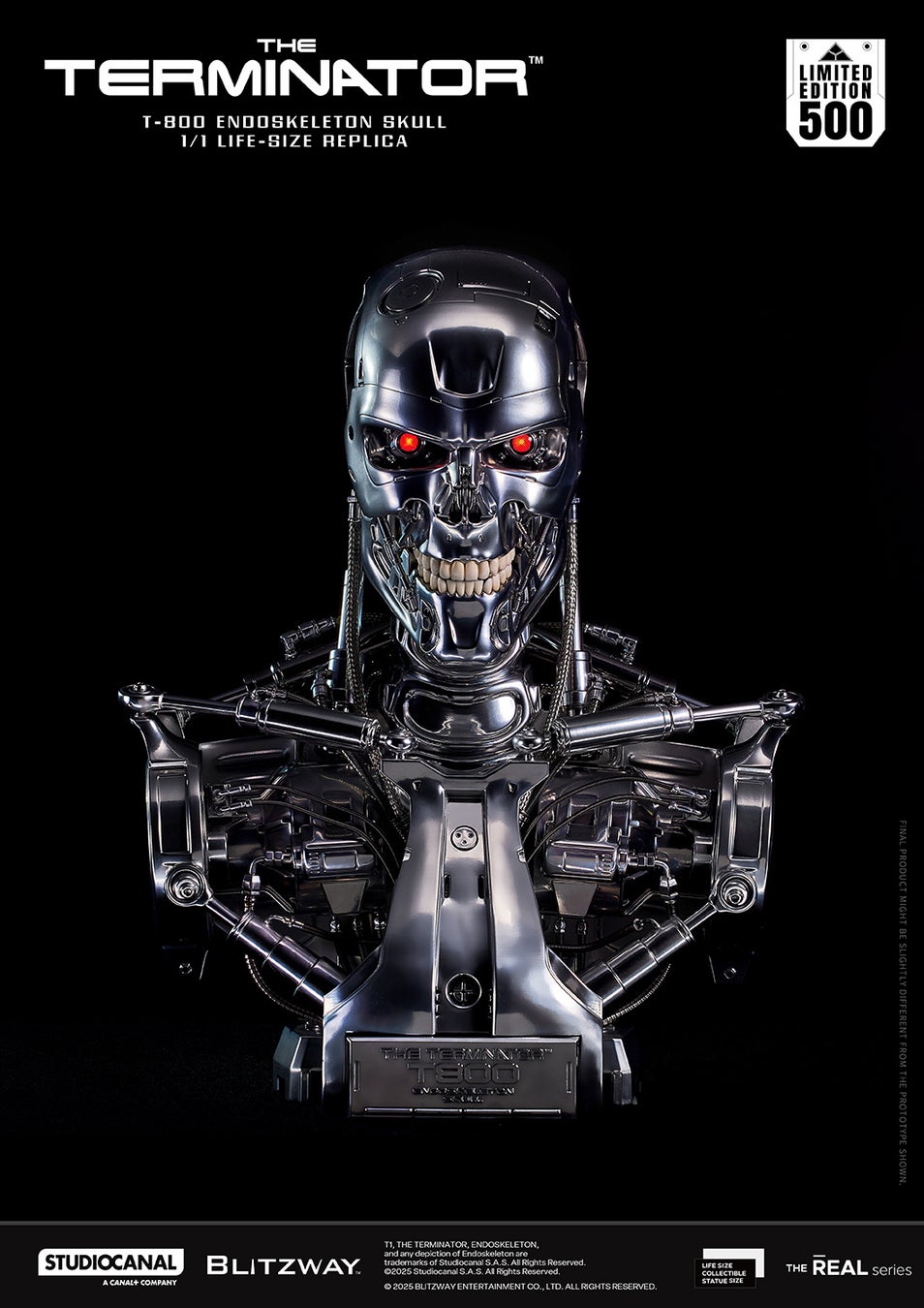 映画で登場する「機械と人間の境界線」に置かれた象徴的な存在「T-800エンドスケルトン」のスカルをライフスケールで完全再現したレブリカがブリッツウェイより登場します。