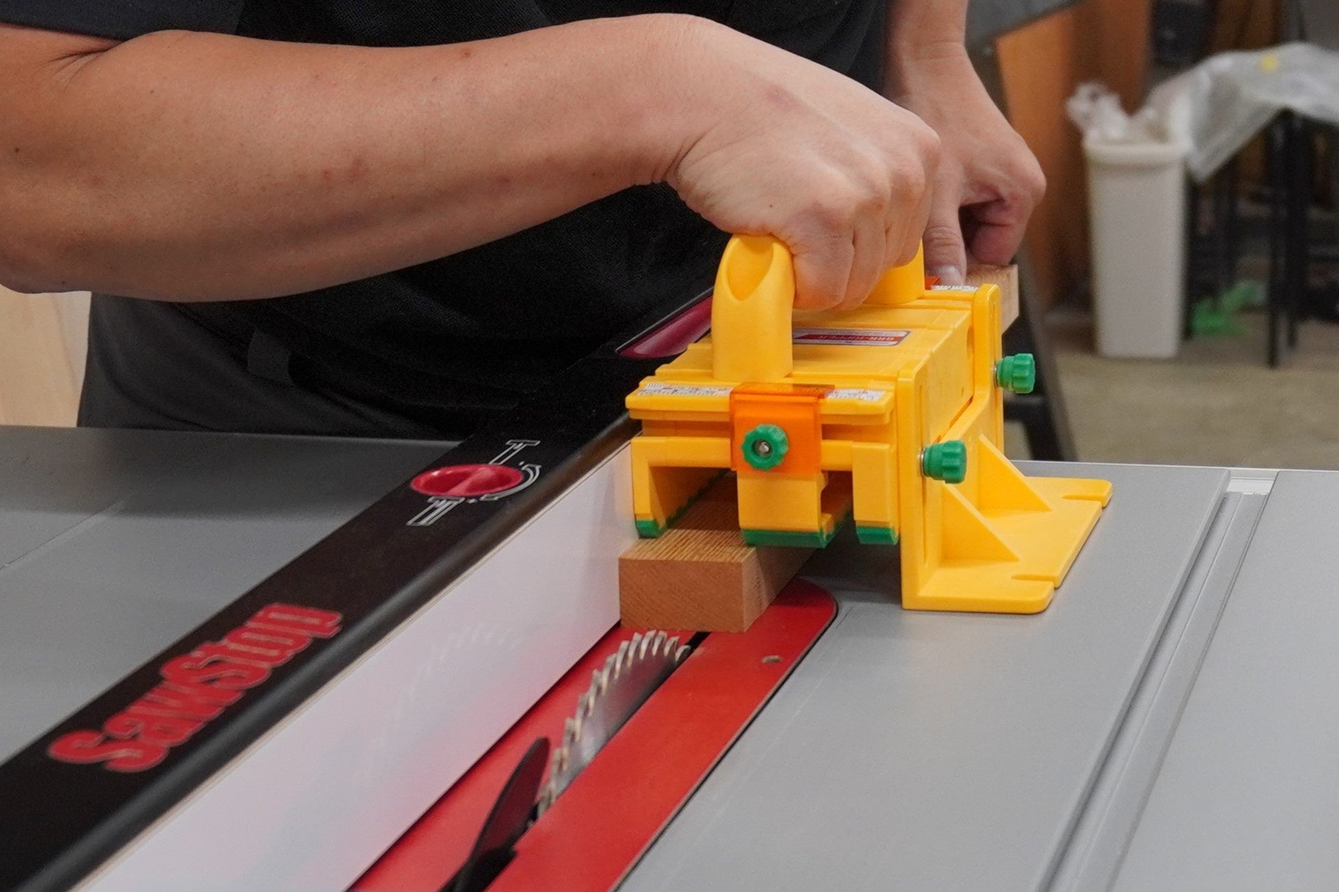 また、材料を適切に保持、送材するには「MICROJIG(マイクロジグ)」「BOW(ボウ)」などの先進メーカーによる安全ジグを合わせて用いることも効果的です。