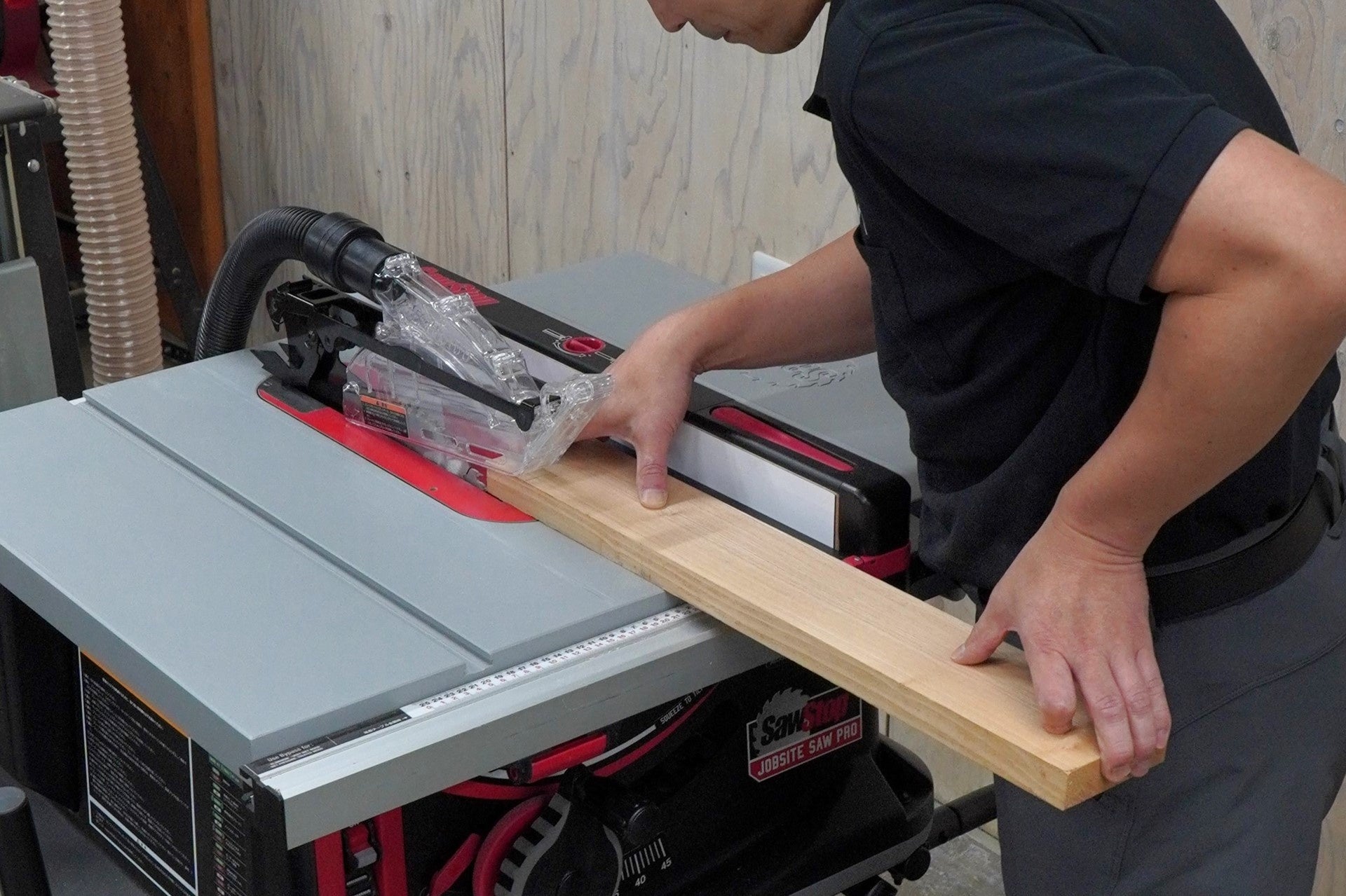 SawStopテーブルソーは工具不要で着脱交換が可能。作業性と安全性を両立したデザインとなっています。