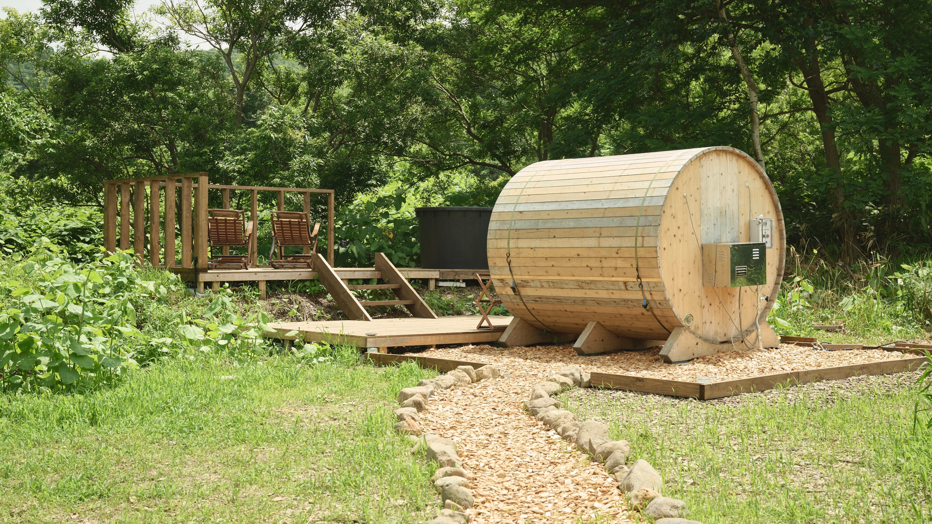 設備 : サウナ、更衣室、水風呂、ウッドデッキ、椅子、水