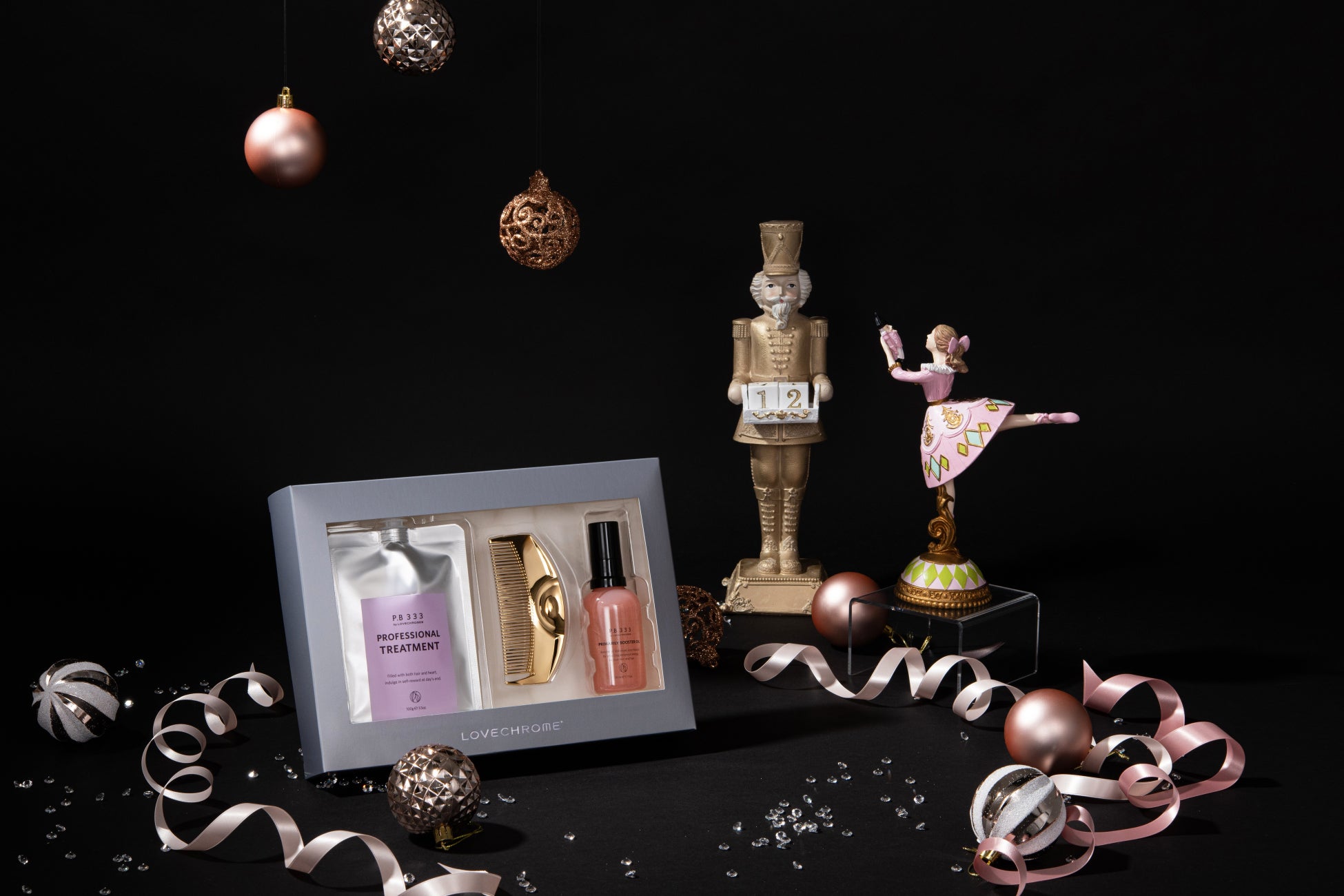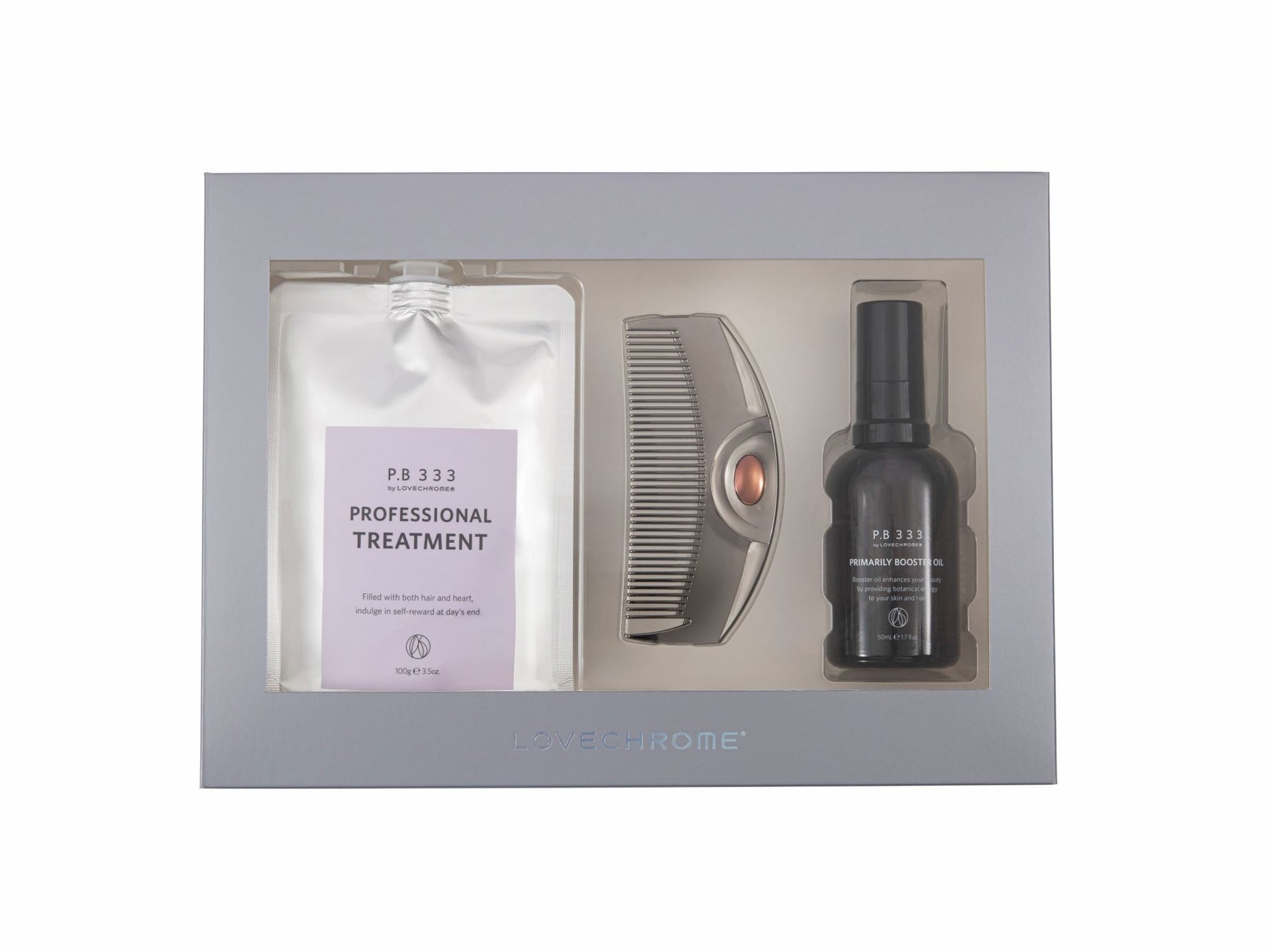 和櫛をモチーフにした大人気モデル「ツキ」と、コームとの合わせ使いがおすすめのラブクロム ヘアケアライン「P.B 333」シリーズがセットになり、大切な方への贈り物として特別感を演出するギフトアソート「ラブクロムスペシャルセット」が登場。