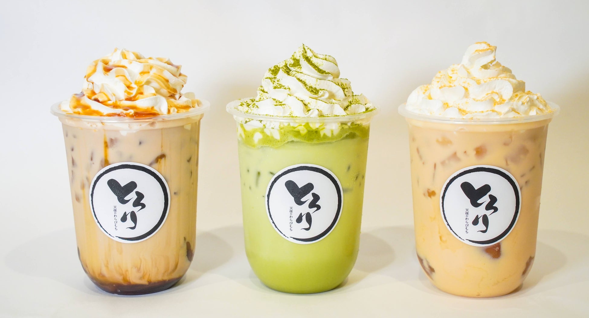 フレーバーは「ミルクティー」「黒蜜」「抹茶」(各730円)をご用意いたします。