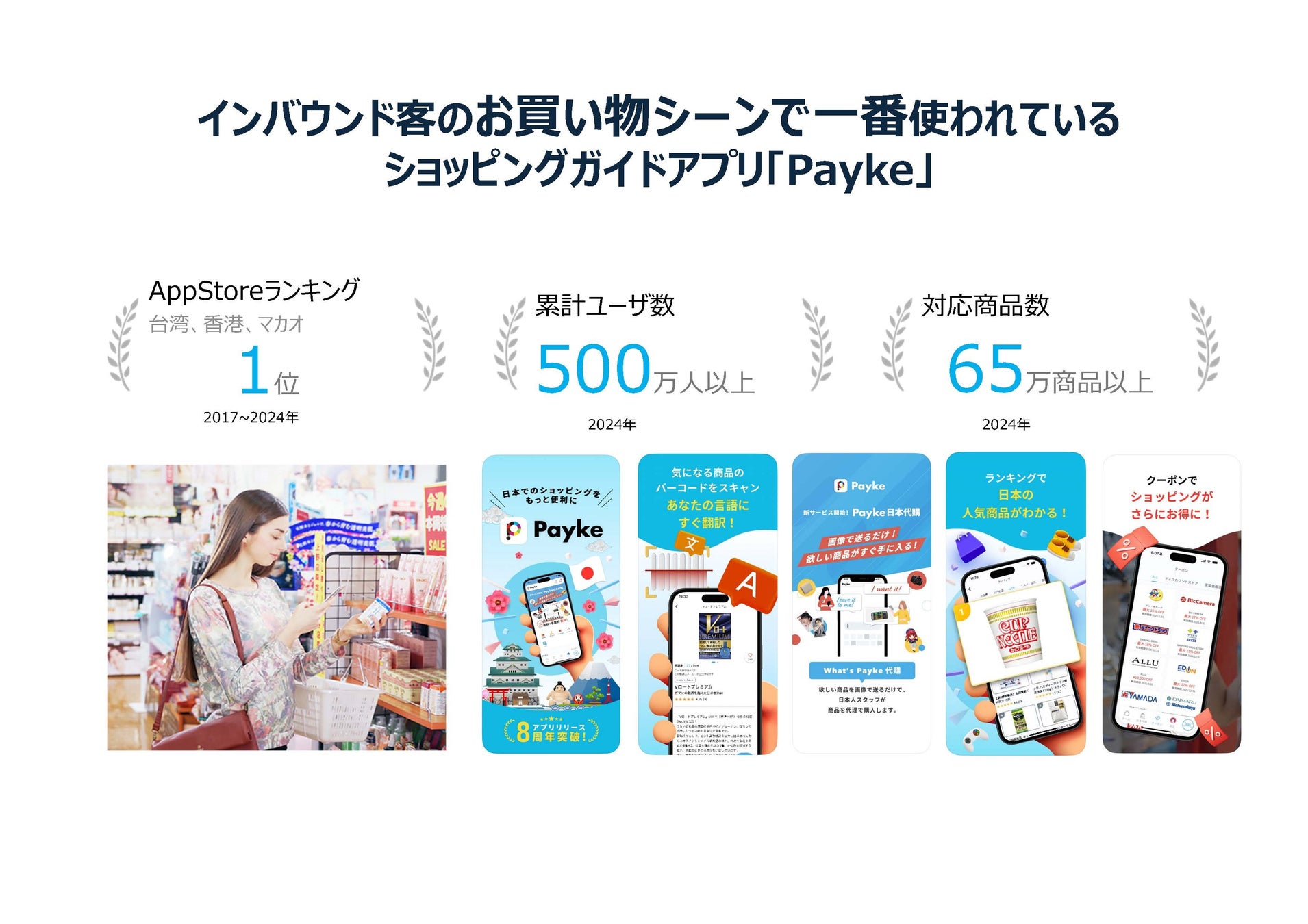 Payke社は、訪日外国人向けショッピングサポートアプリ「Payke」の開発運営を行っています。商品に元からついているバーコードを、スマートフォン・タブレットでスキャンするだけでユーザーの使用言語に変換し、パッケージに収まりきらない商品情報を消費者へ(訴求)発信できるサービスです。加えて、インバウンドに特化した広告事業やデータ分析なども行っています。