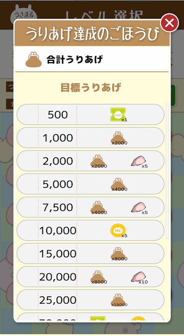 「うりあげ達成のごほうび」は、期間中の限定ステージの合計売上の目標金額を達成することで、アイテムなどのごほうびをゲットできます!