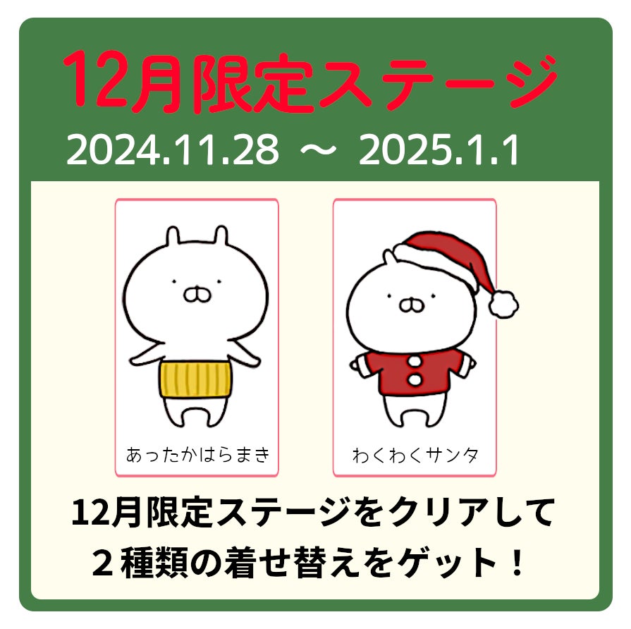 対象ステージクリアで、あったかはらまき(うさまる)、わくわくサンタ(うさまる)の