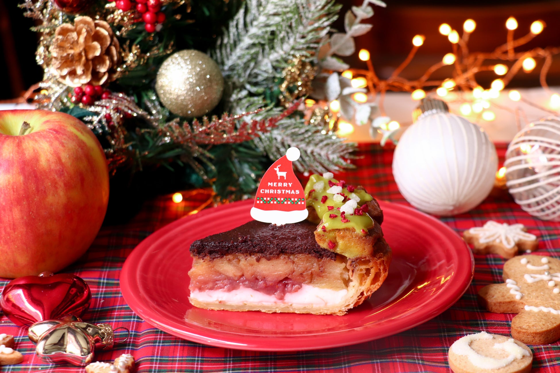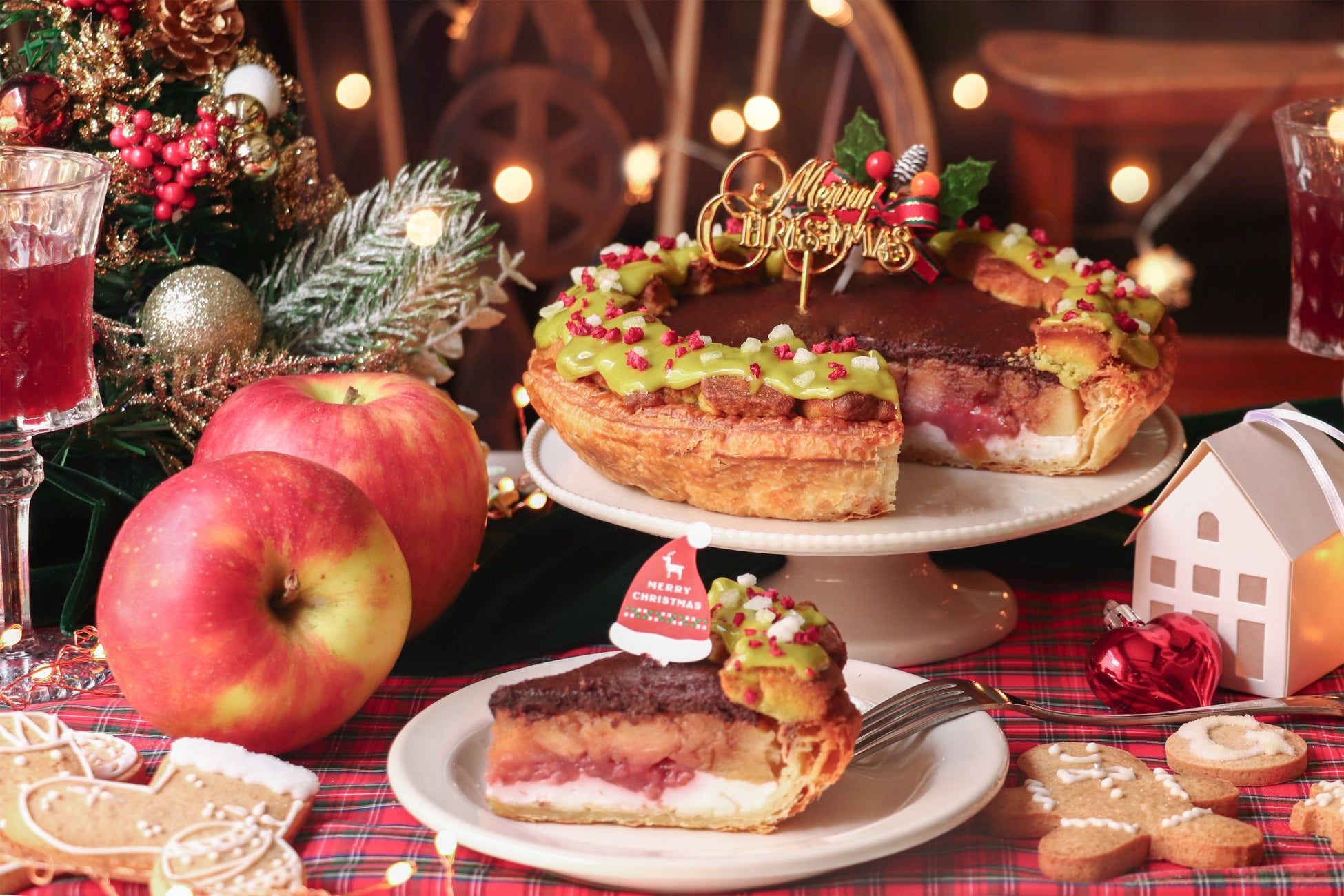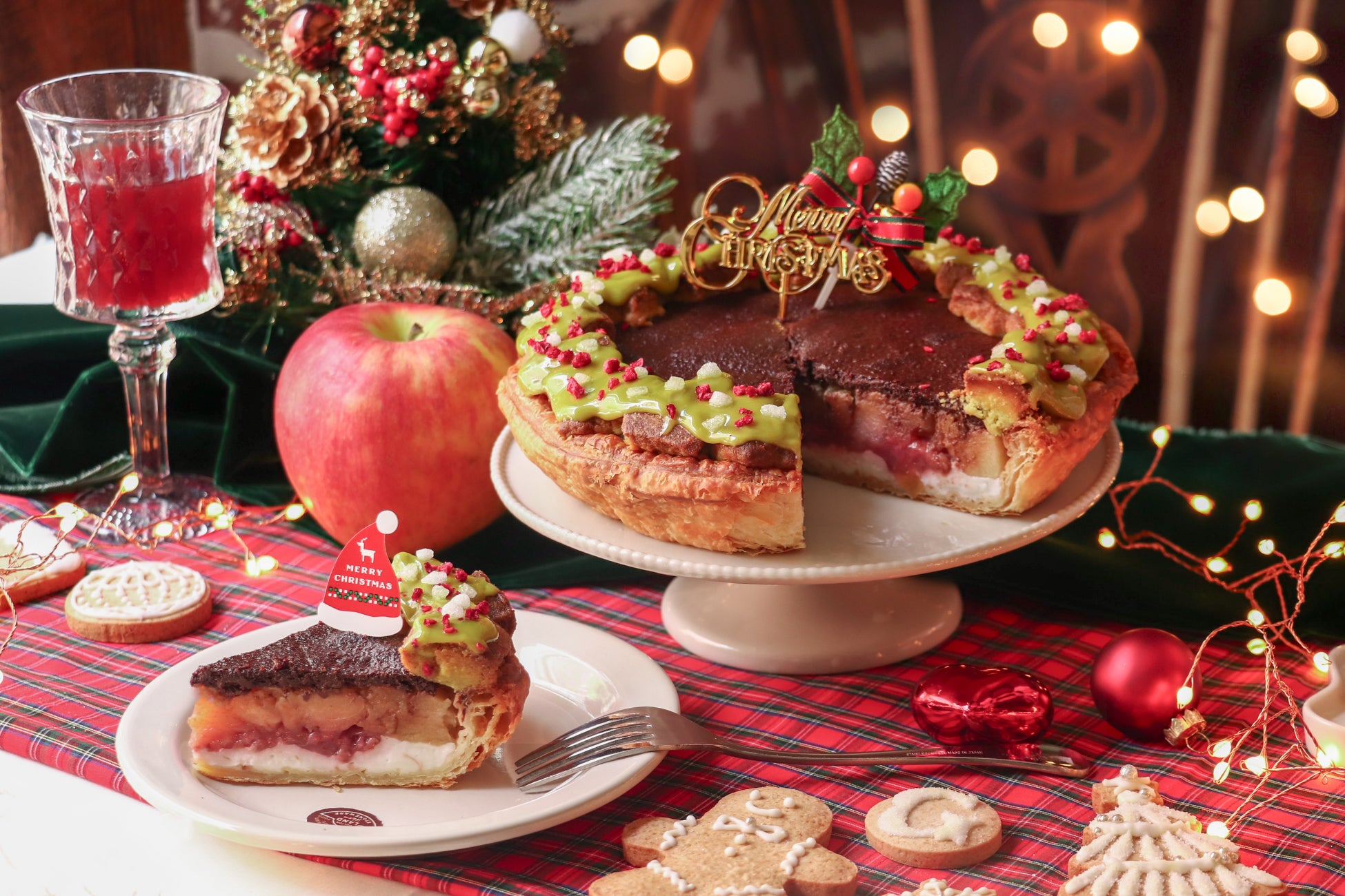 まろやかなミルククリームと甘酸っぱい自家製ベリージャムに、厳選した国産りんごをたっぷり重ね、ココアダマンドクリームを贅沢に乗せて焼き上げた、今年のクリスマス限定アップルパイ。