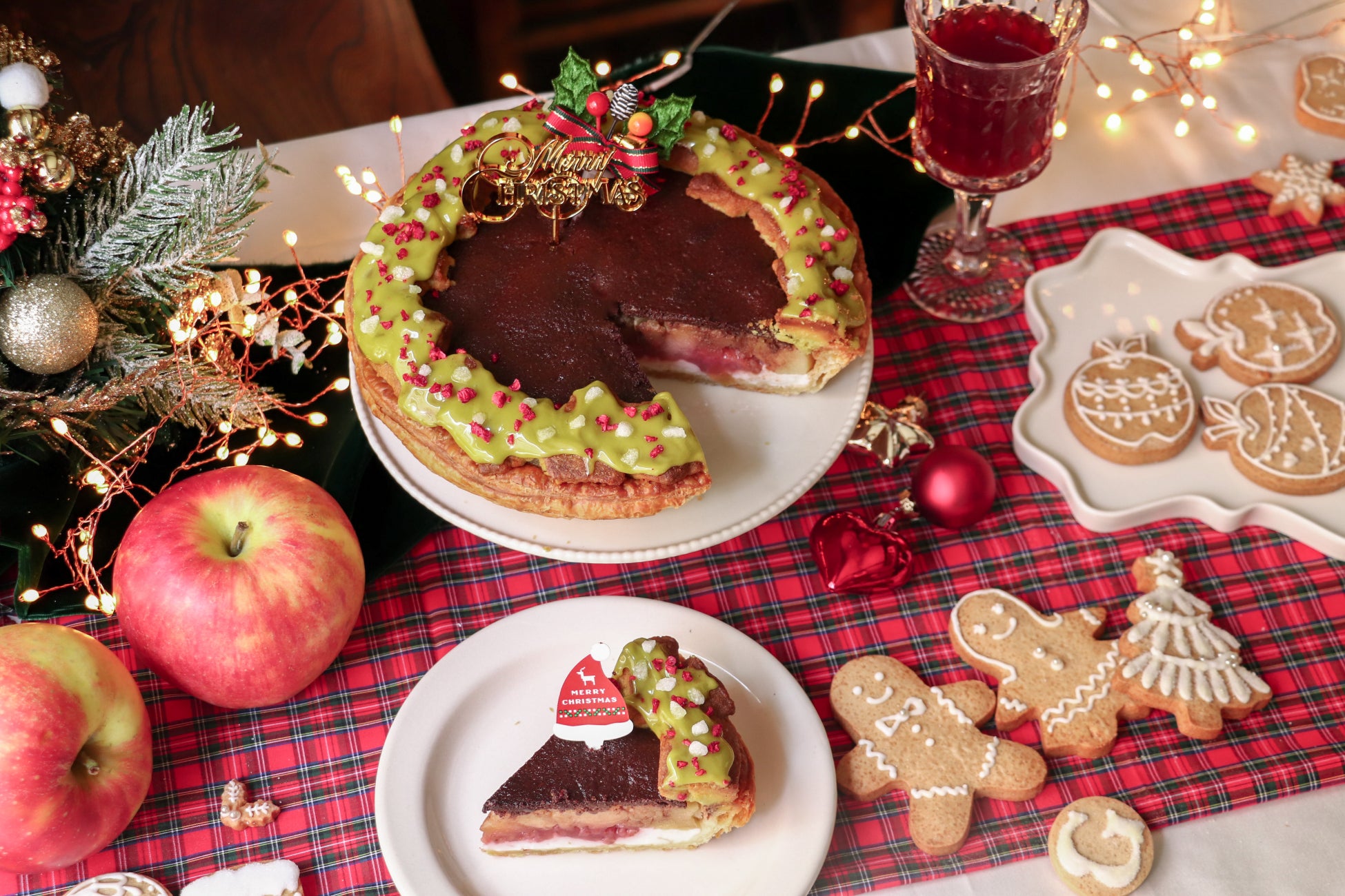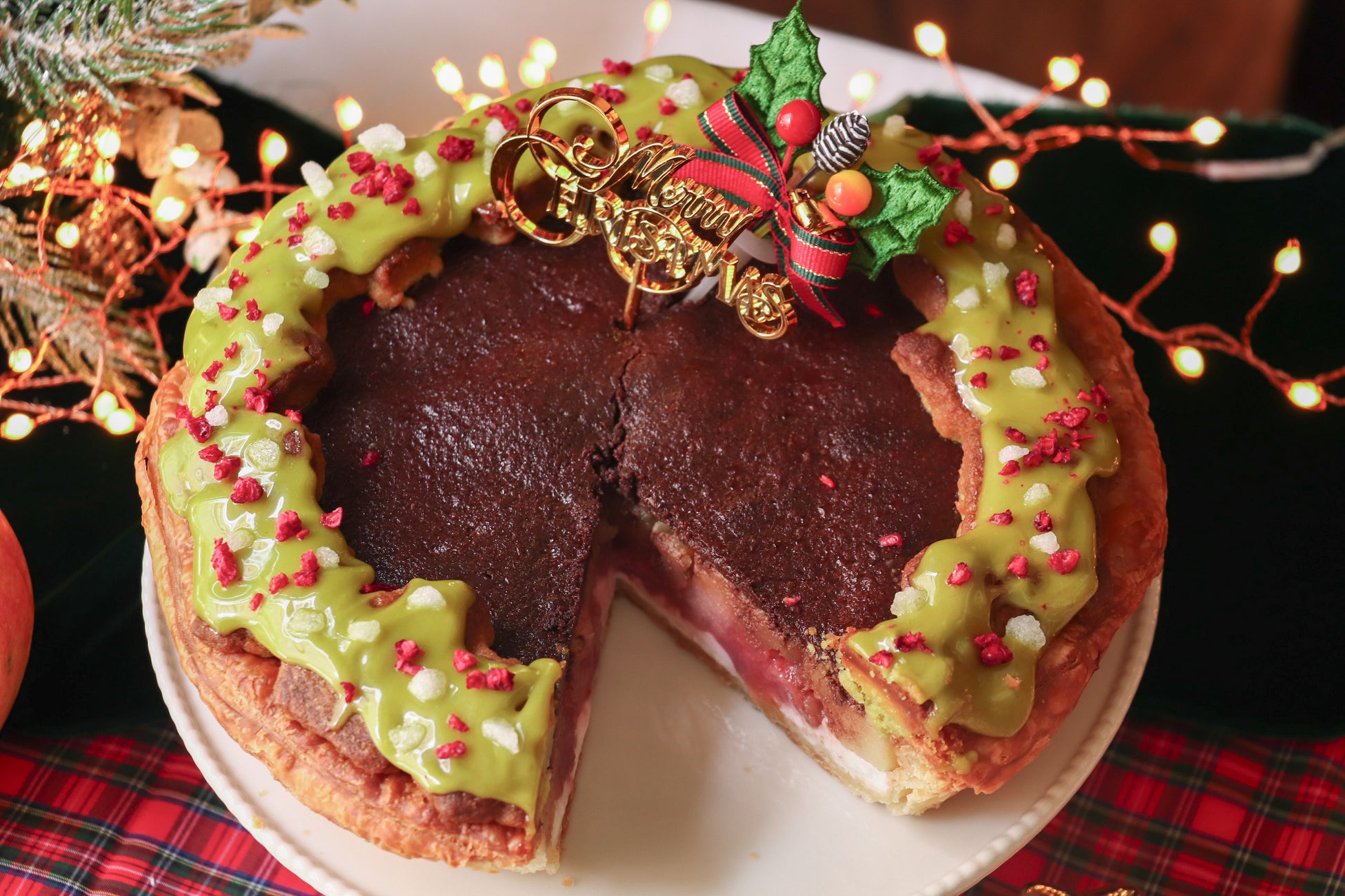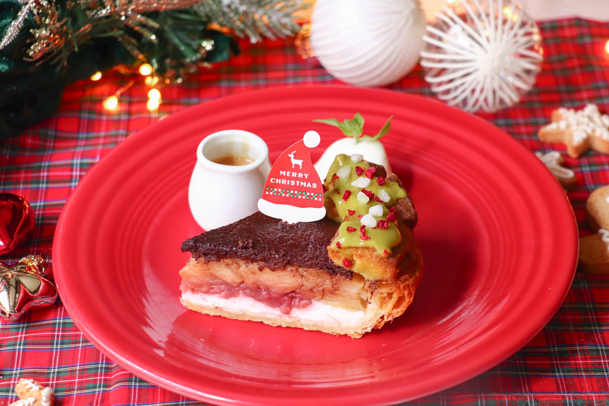 まろやかなミルククリームと甘酸っぱい自家製ベリージャムに、厳選した国産りんごをたっぷり重ね、ココアダマンドクリームを贅沢に乗せて焼き上げた、今年のクリスマス限定アップルパイ。
