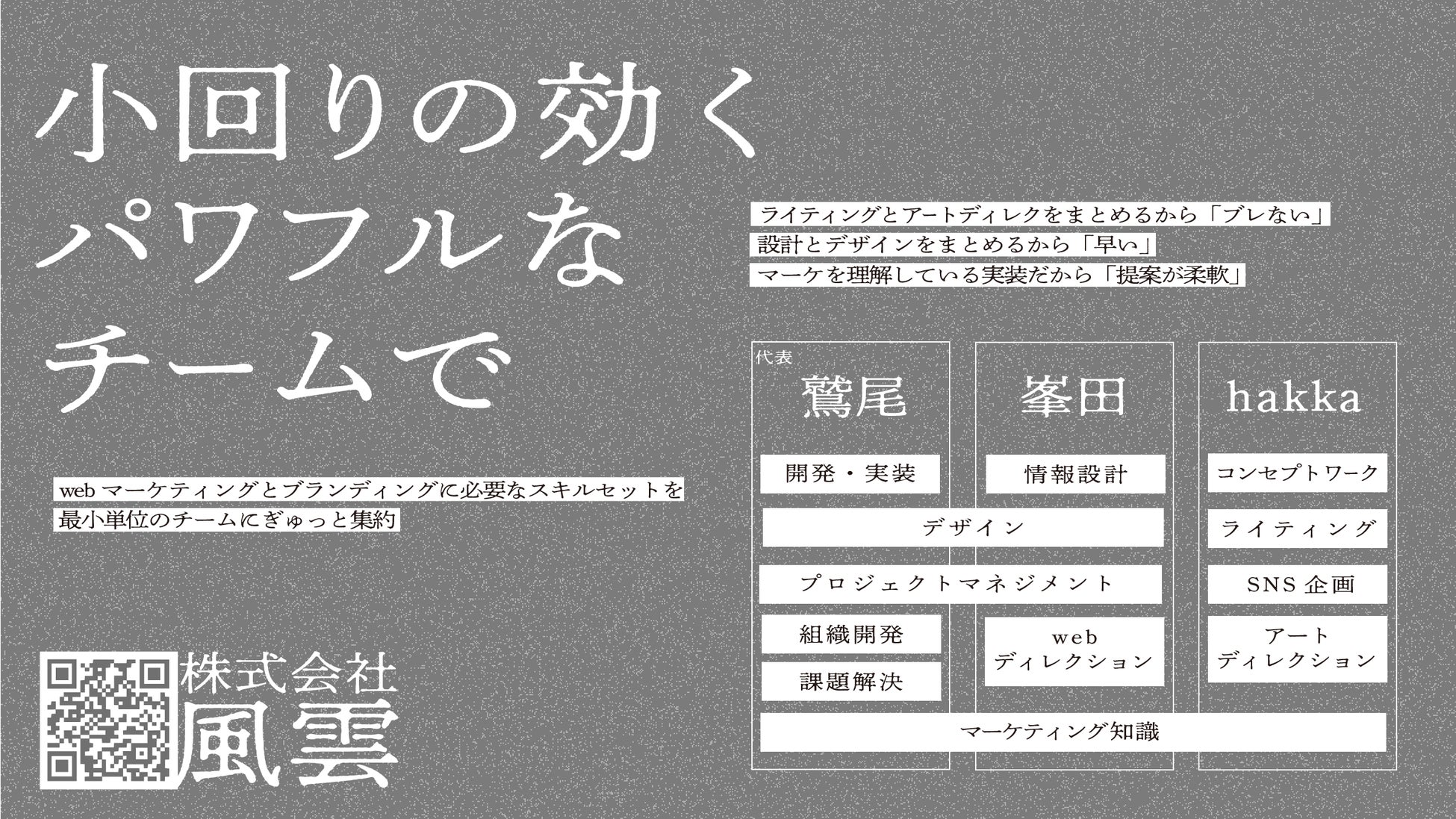 私はもともとエンジニアとしてキャリアを積んできました。fūunは、そこでの『ものづくりが好き』という想いを元に、自分と同じような、ものづくりをする人や企業を応援するweb制作会社として設立した会社です。
