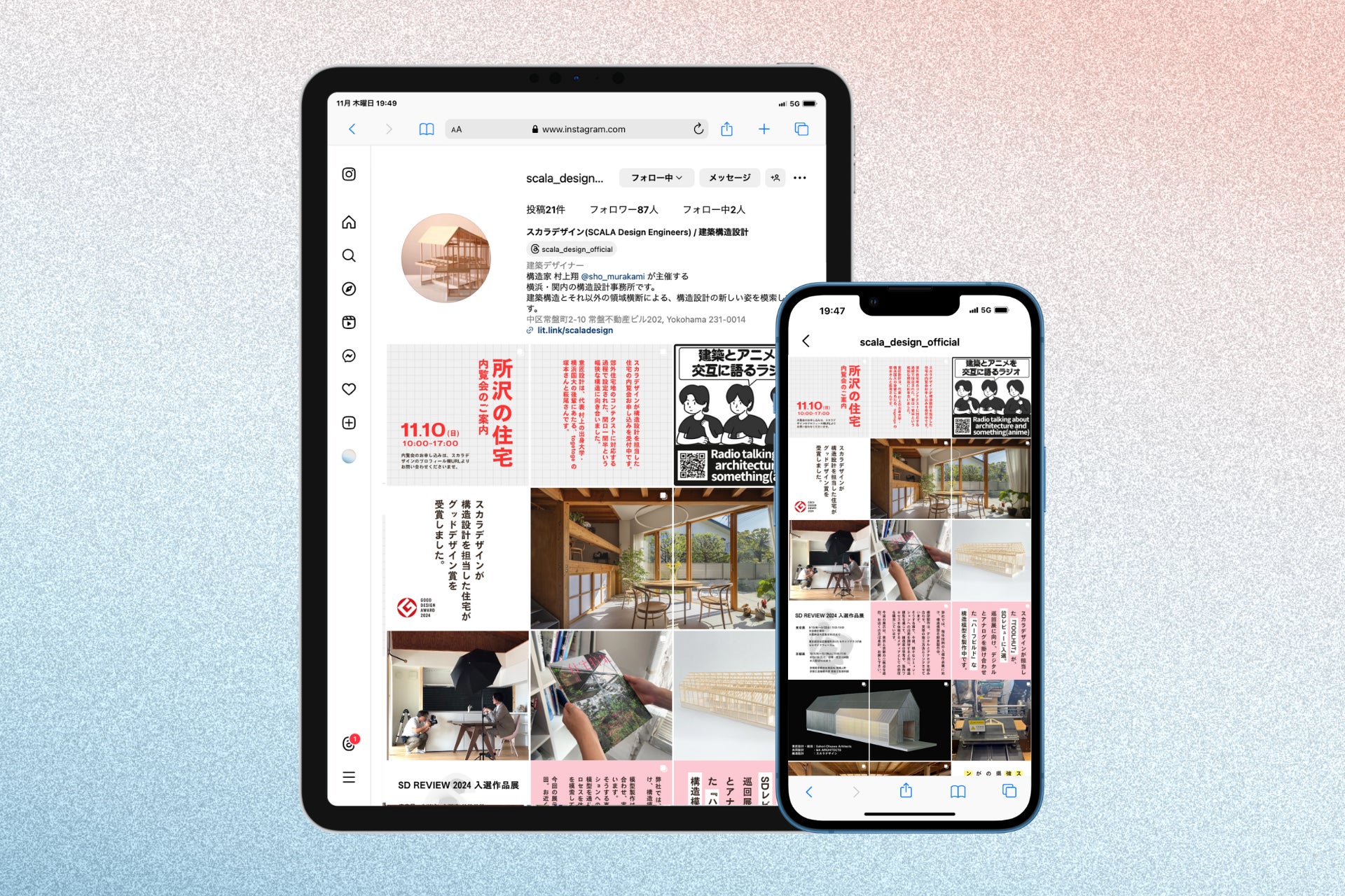 fūunでは、横浜・関内に拠点を構える構造設計事務所、株式会社スカラデザイン(神奈川・横浜/代表 村上翔、以下「スカラデザイン」)と協業し、同事務所の公式Instagramの運用支援を行っています。