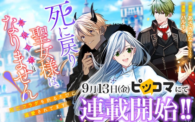 株式会社エブリスタ(本社:東京都千代田区、代表取締役社長:安藤晃義)は、女性向けコミックレーベル「ネクストf Lian(リアン)」にて新作『死に戻り聖女様は、悪役令嬢にはなりません! 〜死亡フラグを折るたびに溺愛されてます〜』を連載開始。2024年9月13日(金)よりピッコマにて先行配信を開始いたします。