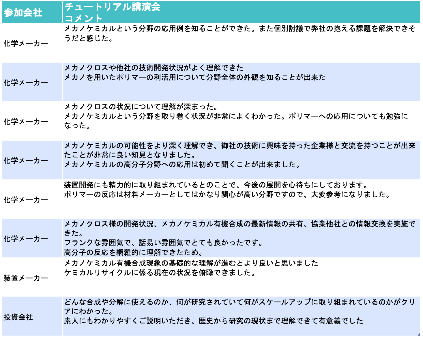 チュートリアル全体に関するアンケートについても実施し、次回に活かすことで会員様、および、参加企業様に有益な情報を提供してまいります。