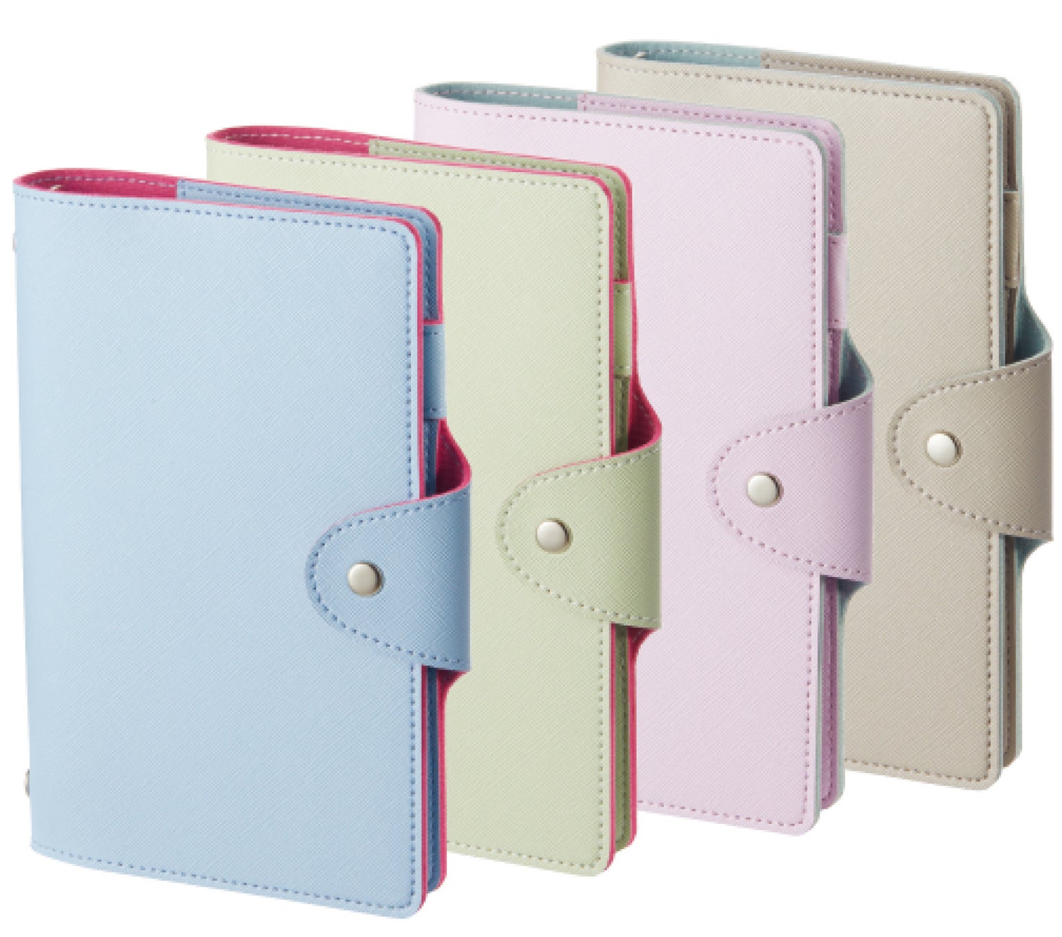 表紙とカラフルなエッジのコントラストが楽しめる。6穴リングの「カジュアルリフィルファイル」を9月初旬発売