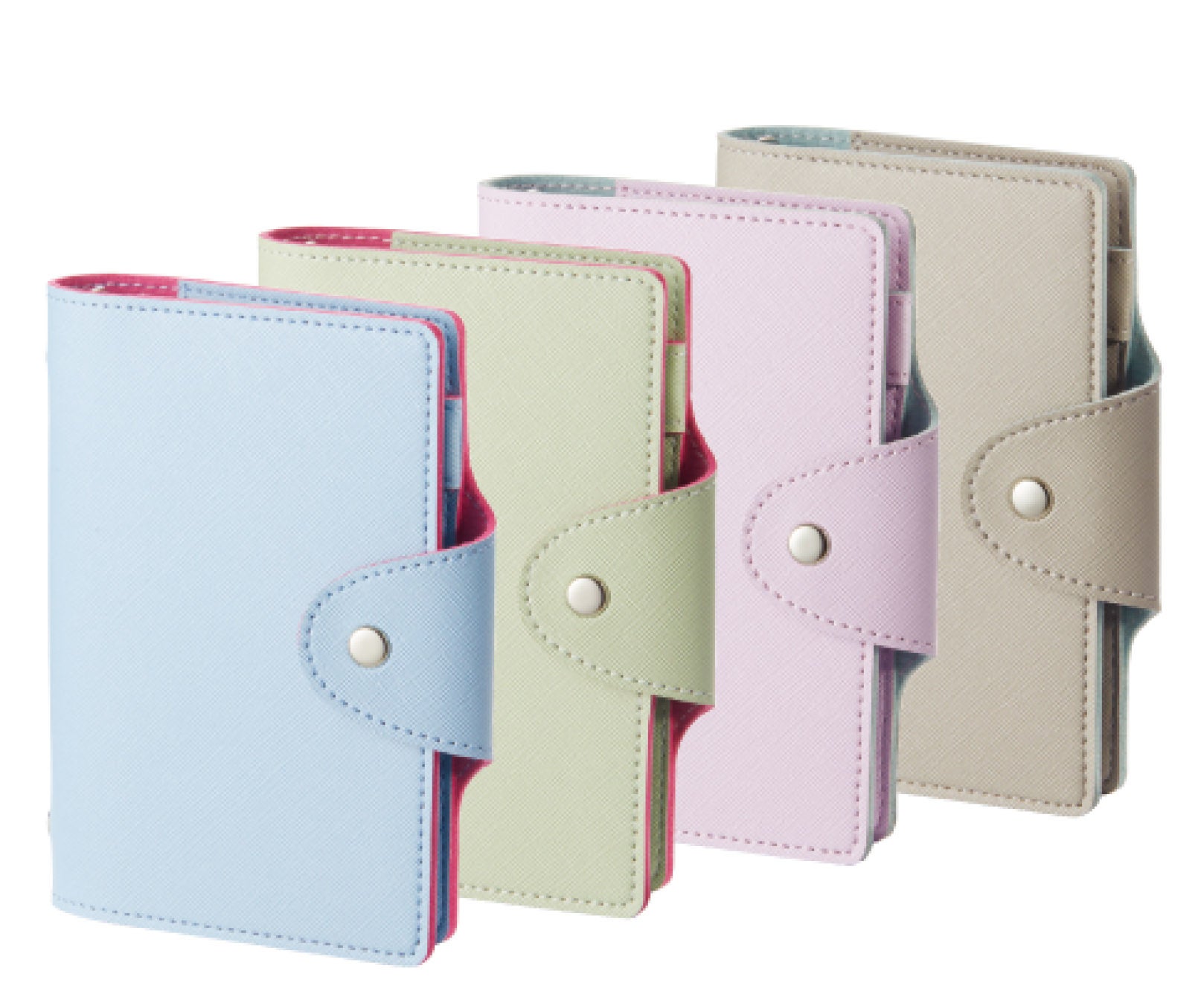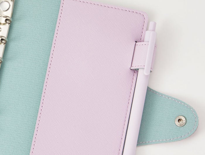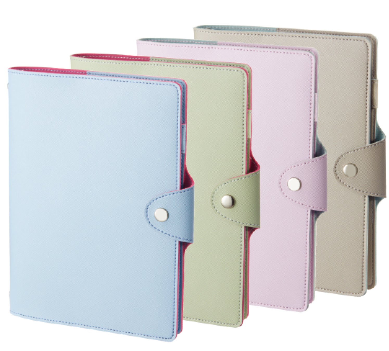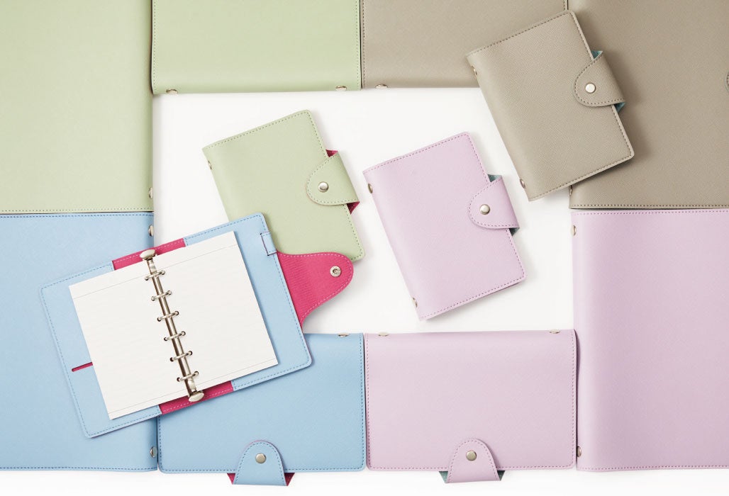 カジュアルリフィルファイルは、表紙とカラフルなエッジのコントラストが楽しめる合成皮革生地を使用した6穴リングのリフィルファイルです。ブルーとカーキグリーンの表紙には、印象的なピンクエッジカラーを使用し、バイオレットとベージュの表紙には、落ち着いたグリーンエッジカラーを使用しています。丸みをおびたホックベルトや可動式ペンホルダーなど、普段使いするシステム手帳としての機能もしっかり備わっており、リフィル保管バインダーとしても使えます。用途や好みに合わせて選べる3サイズを展開しています。