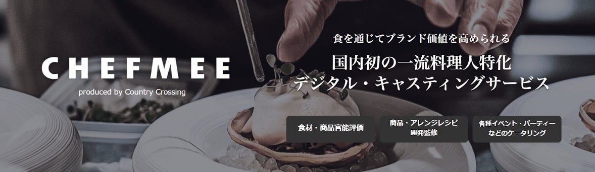 トップシェフと企業・自治体を繋ぐデジタルキャスティングサービス「CHEFMEE」は、企業価値・地域価値向上に課題をもっている方と、国内外で活躍する一流料理人を繋ぐ国内初の一流料理人特化デジタルキャスティングサービスです。アレンジレシピの開発、商品監修、イベントや研修会の登壇、ケータリングサービス、食材官能評価(サンプリング)、飲食店プロデュース、コンサルティングなど、食に関する分野の一流料理人特化のキャスティング仲介サービスです。クライアントのニーズに合わせた最適なキャスティングを提案します。一流料理人の高い技術と豊富な知識を活用することで、さまざまな課題を解決できます。