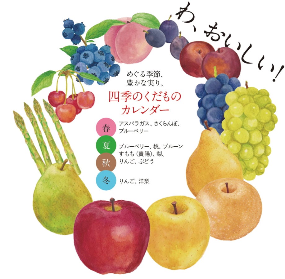 生産されている果物は、りんご、梨、ぶどう、洋梨、さくらんぼ、桃、すもも、柿、ブルーベリーなど四季を通じて様々な果物が栽培されています。