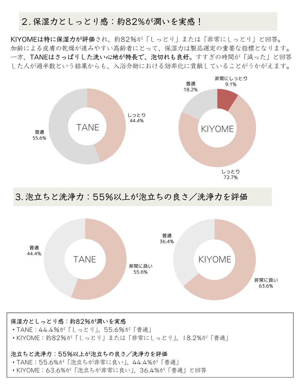 約82%が保湿力を実感!55%以上が泡立ちの良さ/洗浄力を評価