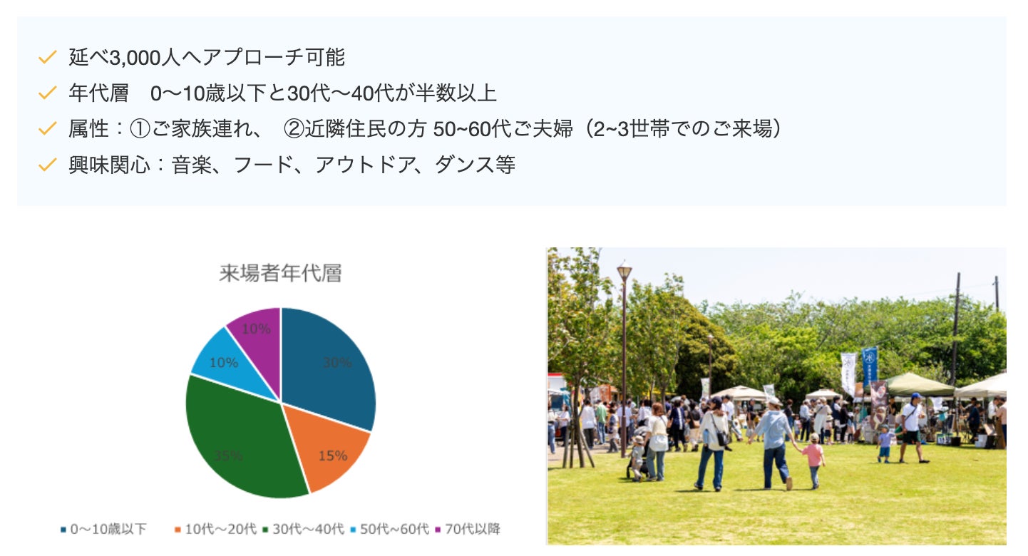 3,000人規模のファミリー層が多く集う野外イベントにおける広告宣伝やブランディングとして、