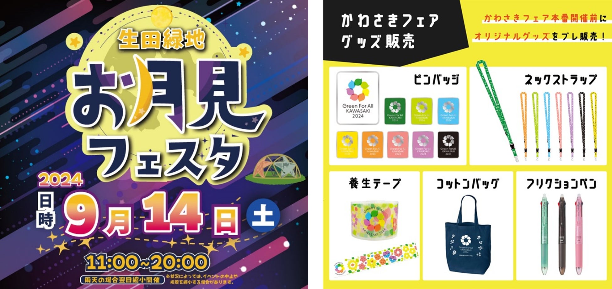 そしてこの度、生田緑地をはじめとした、みどり豊かな会場で開催される「全国都市緑化かわさきフェア」を運営する「全国都市緑化かわさきフェア実行委員会」は、フェア開催に先駆け、「生田緑地お月見フェスタ」の会場内にてフェア公式グッズのプレ販売を実施いたします。