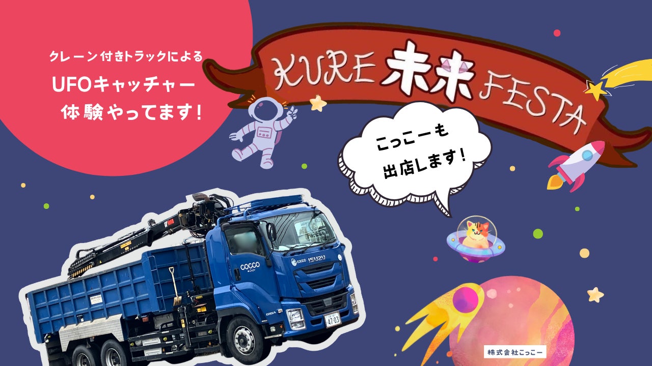 総合リサイクル・建材加工販売を展開する株式会社こっこー(本社:広島県呉市、代表取締役:槙岡達也、以下 当社)は、2025年3月9日(日)に呉市の虹村公園で開催される、呉・大博覧会「KURE 未来 FESTA」に出店することをお知らせいたします。このイベントは、呉市の高校生や大学生が主体となり、呉市の魅力や新たな観光資源の発見、地域のにぎわいを創出することを目的としています。当社はこのイベントに賛同し、身近な製品の分別体験や実車によるUFOキャッチャー体験を通し、子どもたちにリサイクルの重要性を伝えるとともに、限りある資源を大切にする心を育んでもらいたいと考えています。