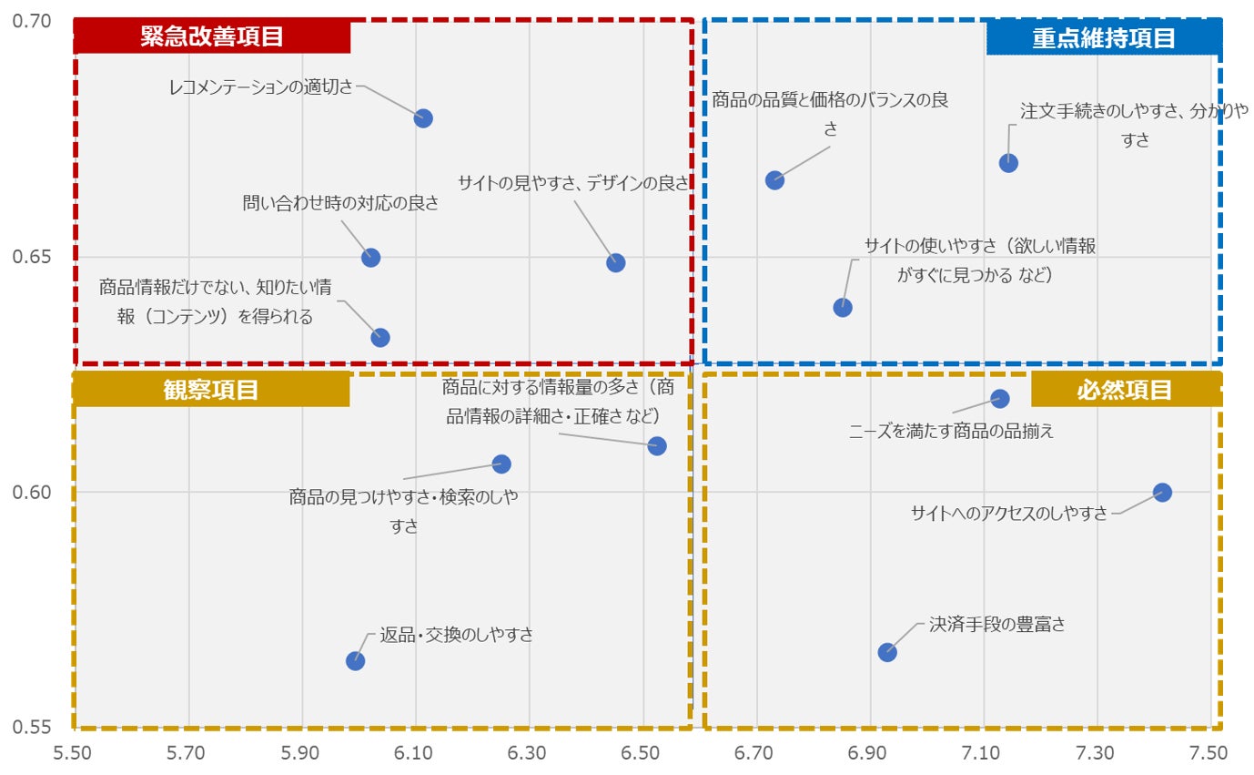 推奨度と顧客体験に紐づくタッチポイント(顧客接点)から課題となる要因を分析し、対応優先順位を明確に示したアウトプットを提供いたします。