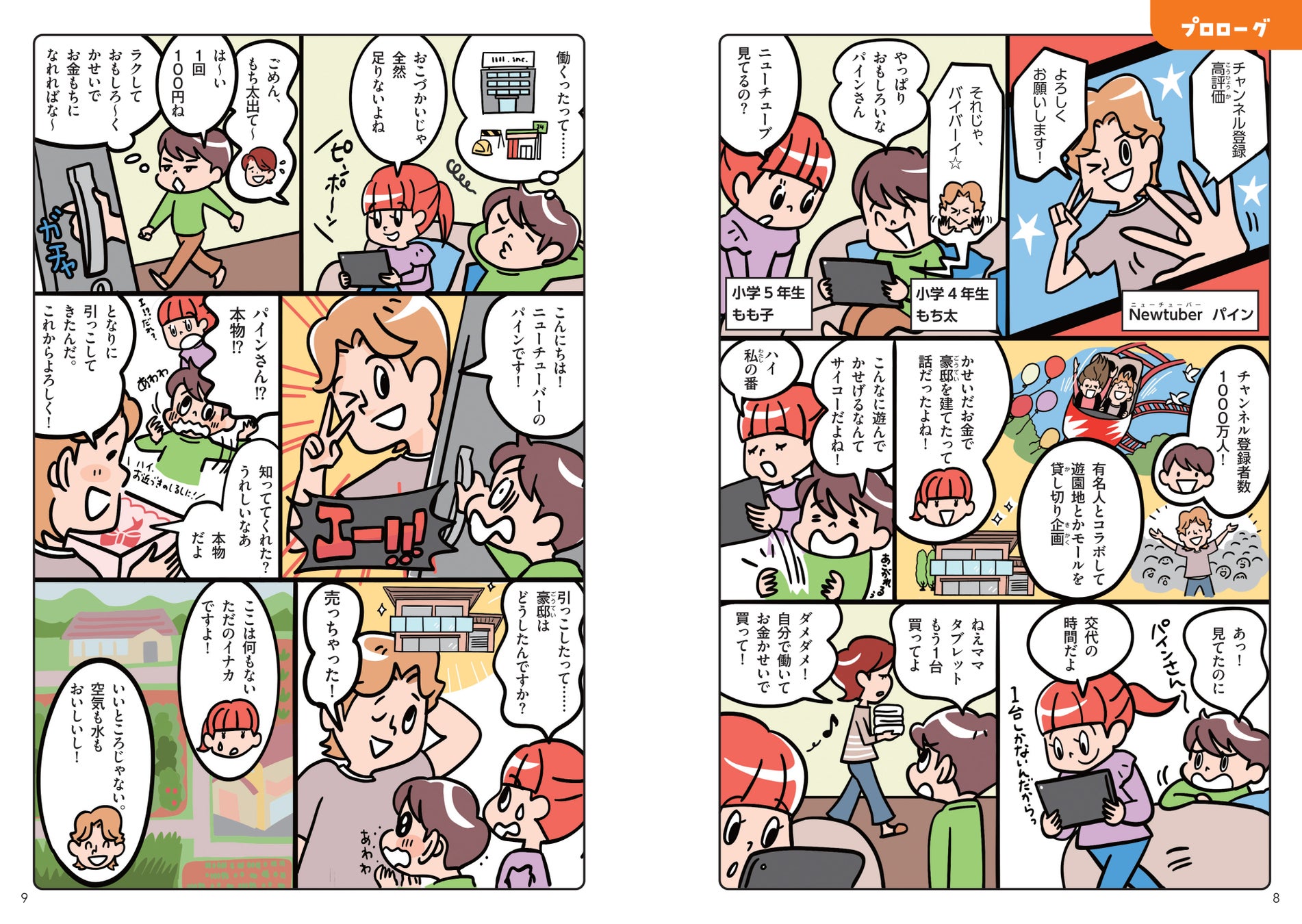 もも子ともち太のきょうだいと、となりに越してきたNewtuberのパインさん。パインさんの新しい動画プロジェクトをきっかけに、もも子ともち太はお金について学びはじめます。子どもたちが夢中になって読めるストーリー展開です。