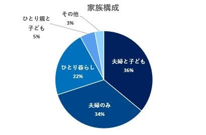 【家族構成】夫婦と子ども(36人)夫婦のみ(34人)ひとり暮らし(22人)