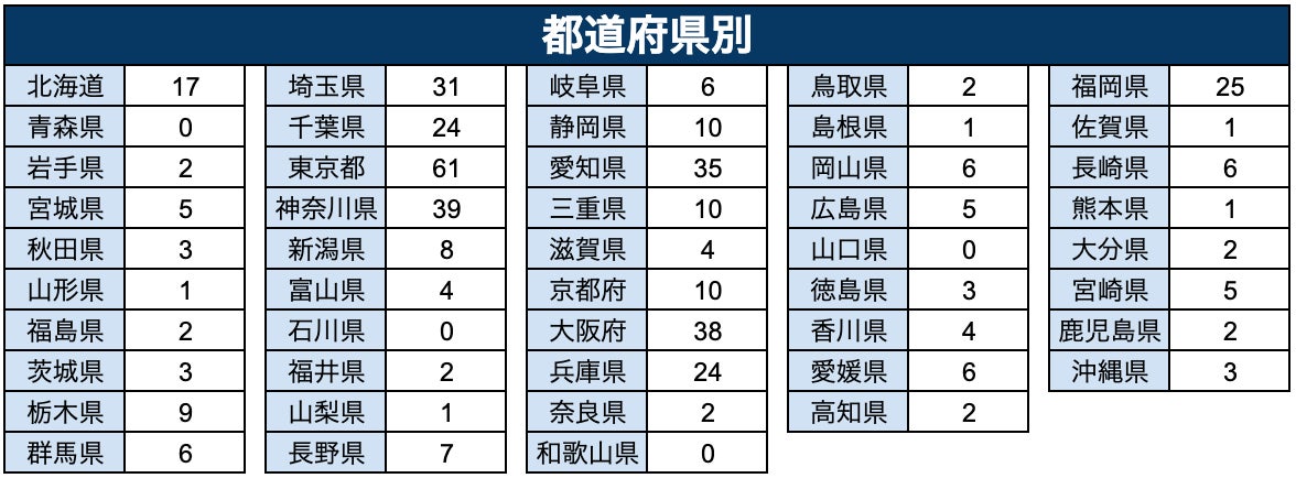 入会者の居住地を都道府県別に分析した結果、以下のような傾向が見られました。