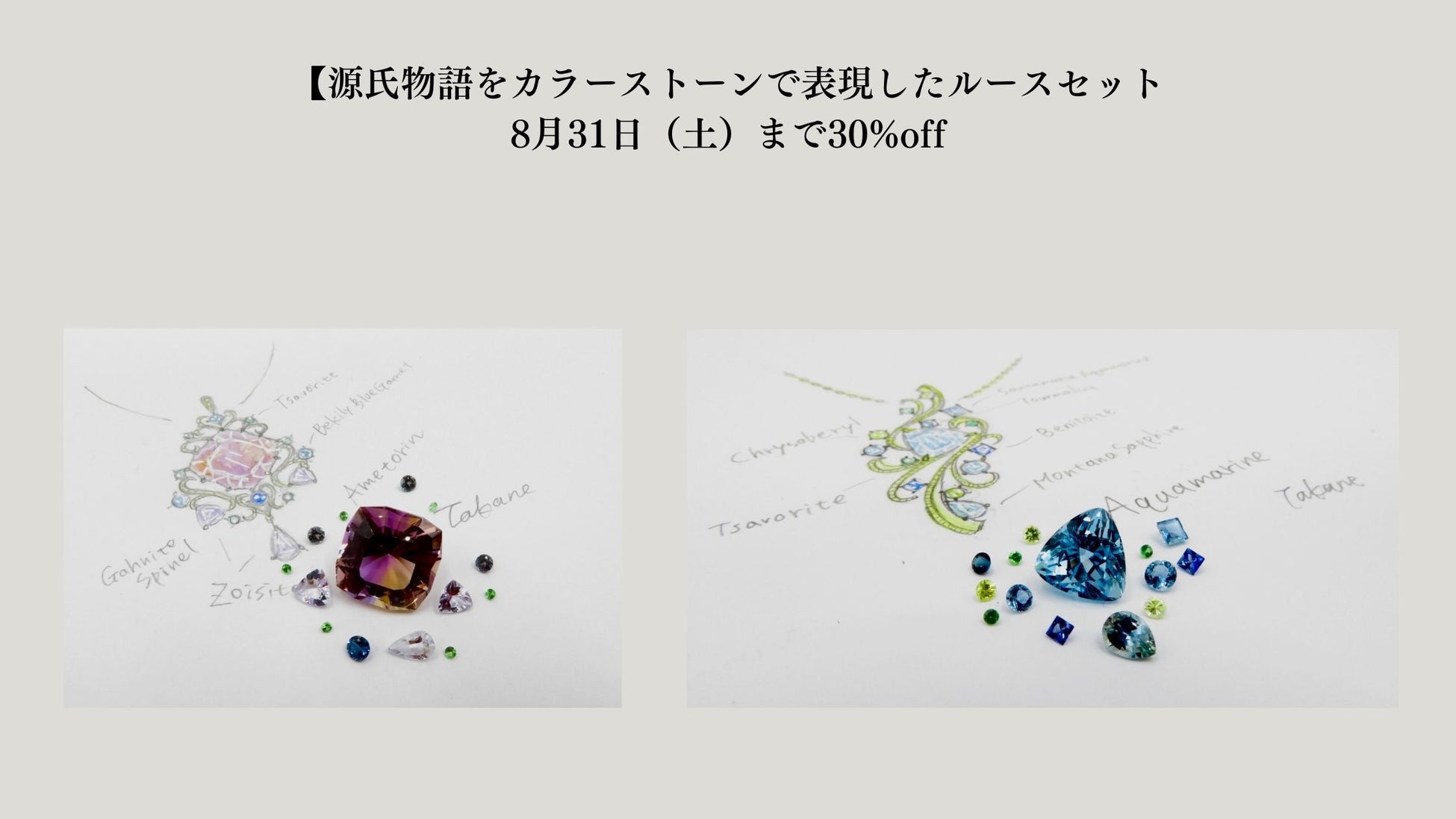 お手元の宝石(ルース)を組み合わせたデザイン、源氏物語宝石絵巻セットのみでリング、ペンダント、ネックレスもデザインいたします。
