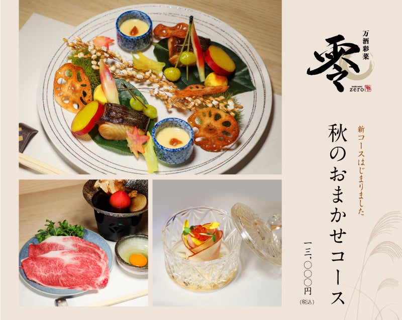 株式会社アフェクトが展開する「万酒彩菜 零」(公式HP : https://bansyusaisai-zero.com/)は2024年9月24日より『秋のおすすめコース ~中秋の名月 秋の色彩~』をリリース致します。おまかせコースは13,000円。