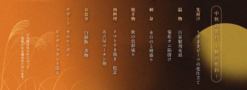 秋の彩りをふんだんに盛り込んだ新コース「秋のおすすめコース ~中秋の名月 秋の色彩~」