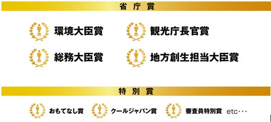 省庁賞・特別賞 :環境大臣賞、地方創生担当大臣賞、総務大臣賞、観光庁長官賞、特別賞(10賞程度)
