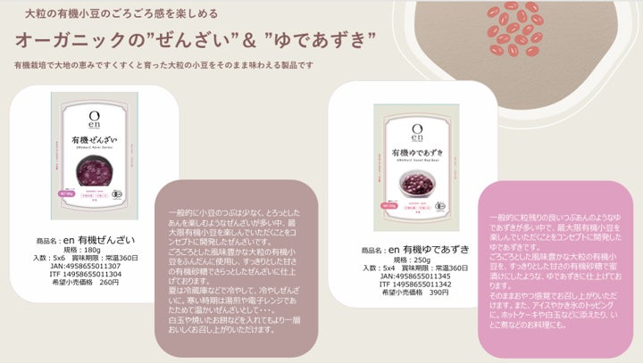 国内市場のみならず、海外への本格展開も視野に入れており、“和と自然の融合”を象徴するグローバルブランドとしての飛躍が期待されている。今回のリニューアルでは、パッケージをブランドで統一するとともに、従来の小豆製品に加え、さまざまなオーガニック原料を活用した商品群を順次展開予定。