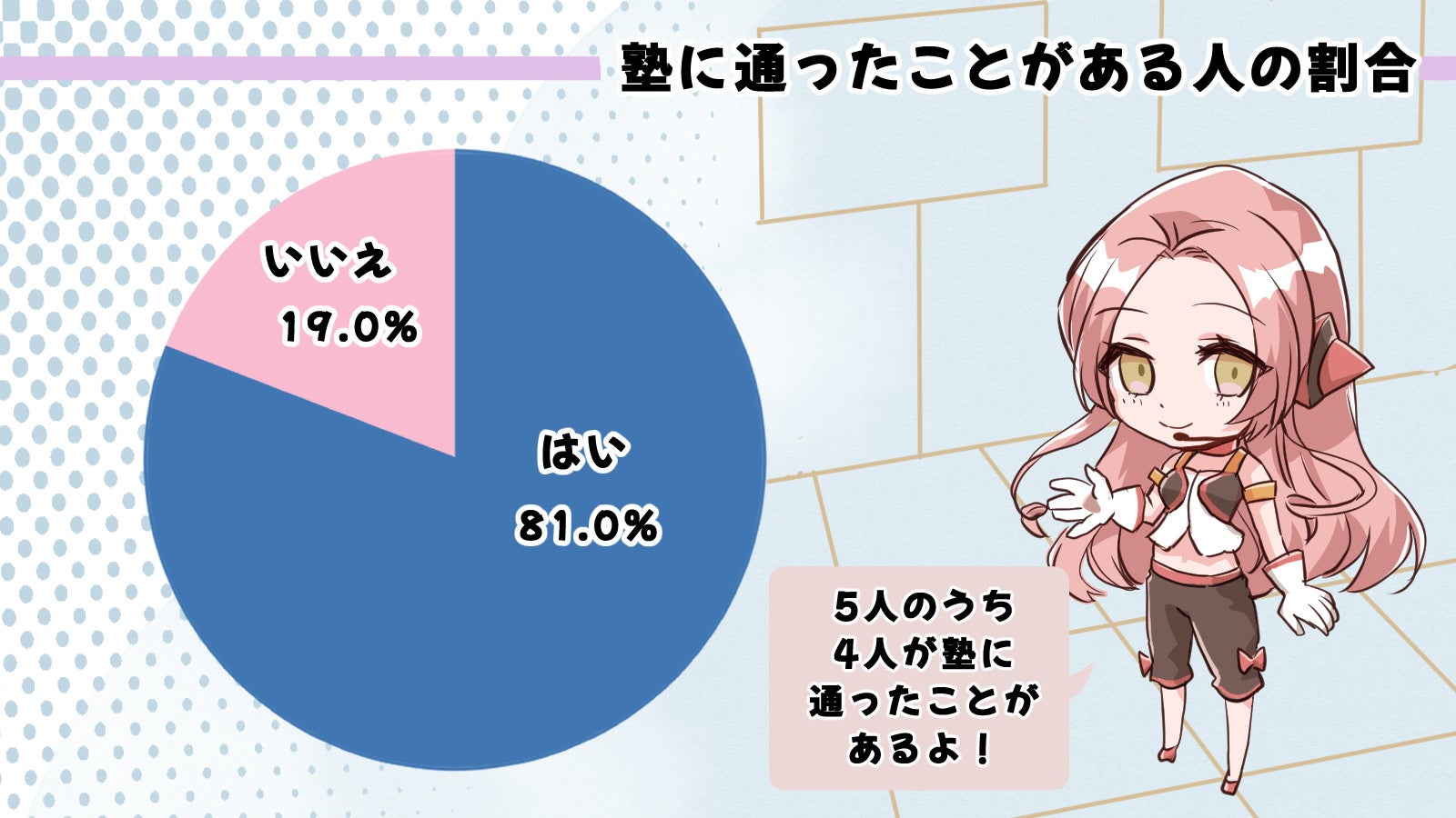 「塾に通った経験のある人」の割合はなんと81%とかなりの割合を占めていました!