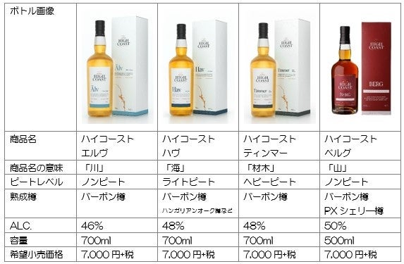 株式会社都光(東京都台東区)は、スウェーデンの世界遺産「ハイコースト」からその名をとったハイコースト蒸溜所から定番品4種と限定品3種を2024年7月19日(金)に発売いたしました。ハイコースト蒸溜所はジャパニーズウイスキーの製造プロセスから学んだクリアなニューポットに、40Lという小さな樽などの工夫、そして寒暖差70℃という気候で驚くほど豊かな熟成感が特徴です。