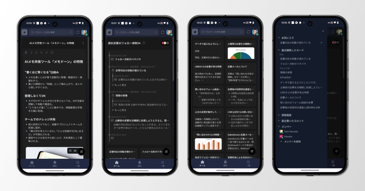 チームで使うAIメモツールの「メモドーン」がスマートフォンに対応
