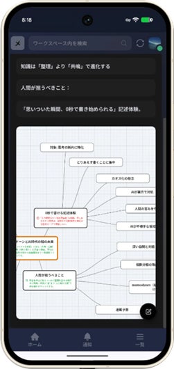 PC版と同じリッチテキストエディタを搭載し、画像添付やAIによる関連カードの提示やマインドマップ閲覧も可能。