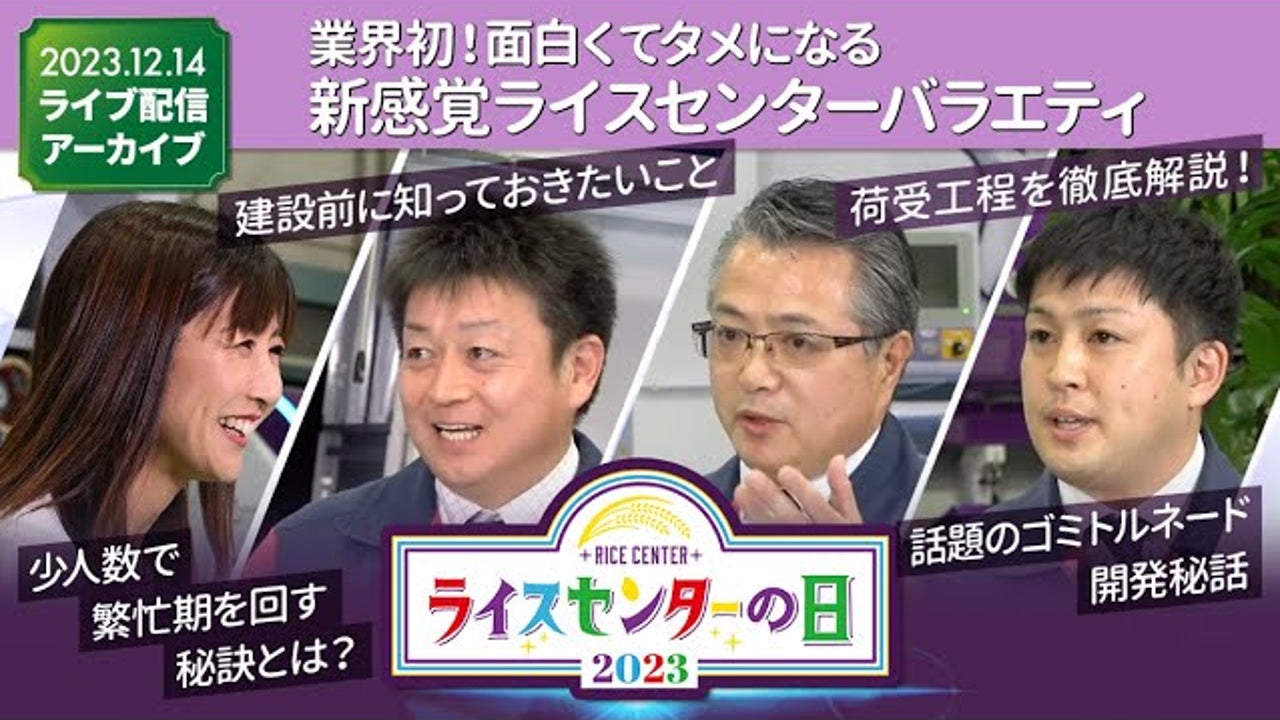 コメ農家が抱える高齢化・人手不足などの課題に向き合い、持続可能な農業を支えるライスセンターの最前線を伝えるYouTubeオンラインイベント。2023年より毎年12月に開催、今年で3回目を迎えます。