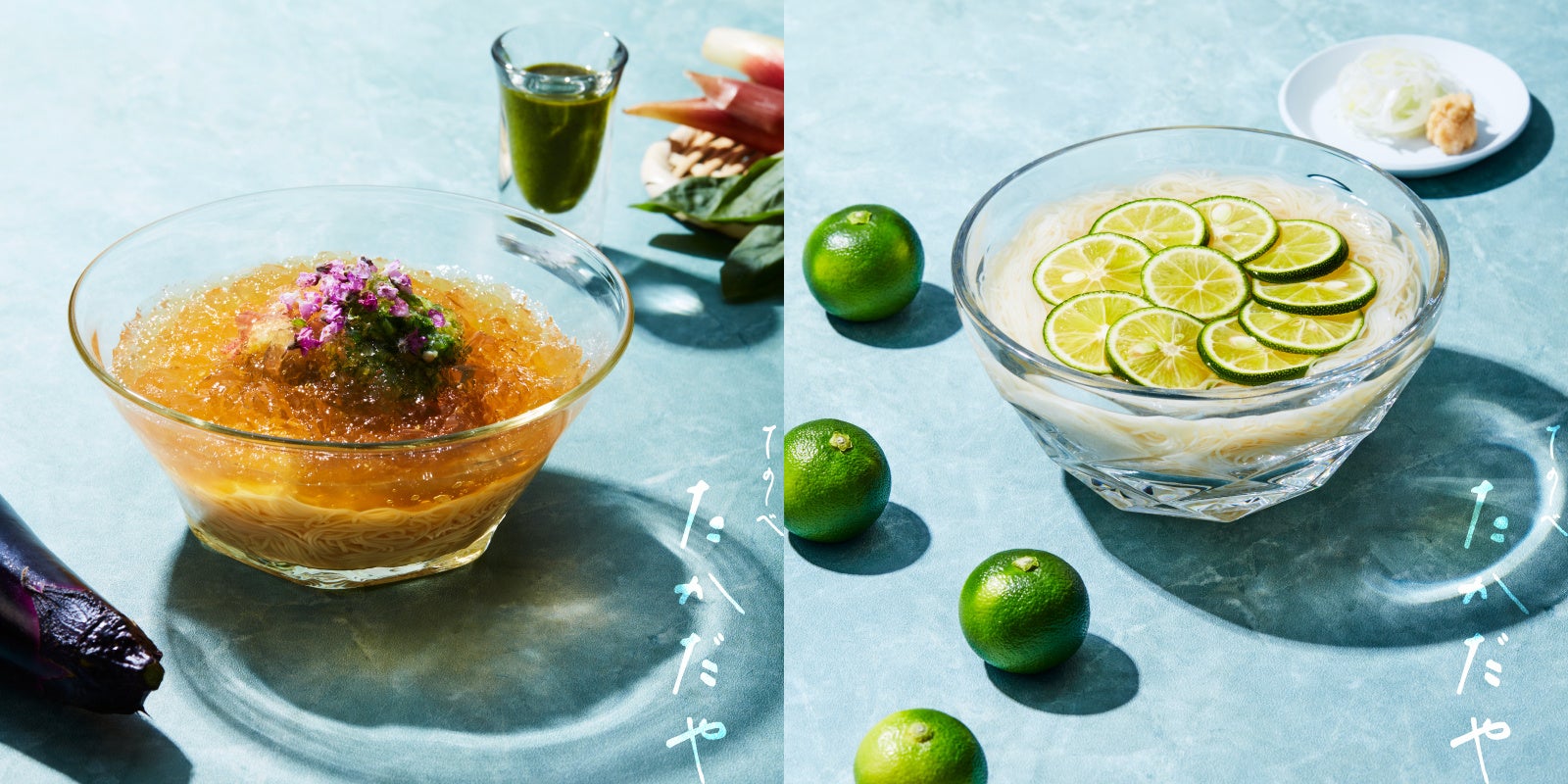 マル勝髙田の『三輪の神糸』は、短いゆで時間にもかかわらず、本腰熟成製法ならではコシの強さがあり、スープで食べてもつるりとした食感があるため、料理の幅を広げてくれるおすすめのストック食材です。同社のそうめん専門店「てのべたかだや 」では、海老塩スープにバジルオイルを加わえたスープで食べる『sumen(すーめん)』に行列ができおり、そうめんの新しい食べ方への関心の高まりを感じます。