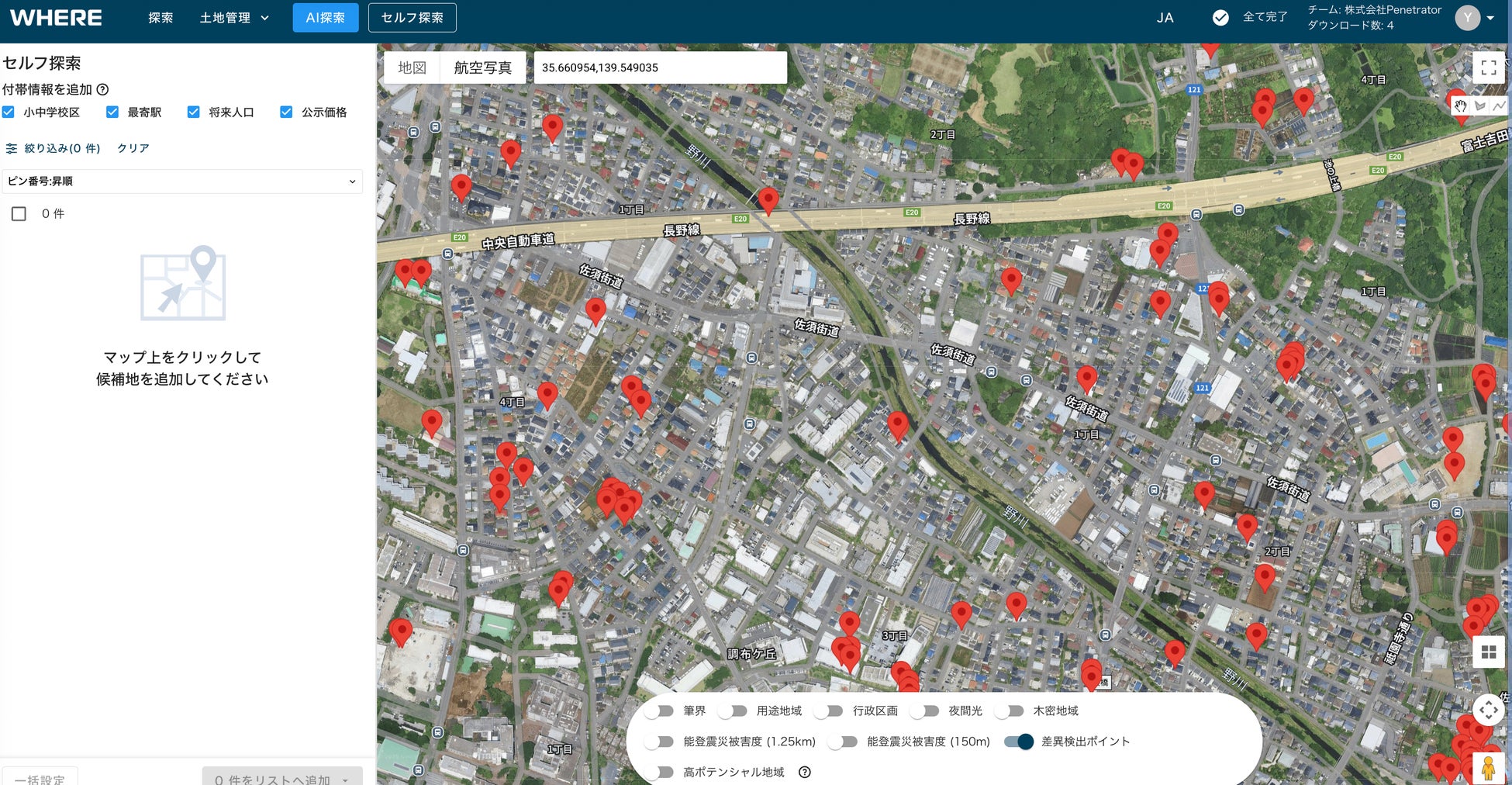 本システムは、Penetratorが開発した不動産仕入れプロセスをDXするSaaS『WHERE』を通じて、一部顧客向けにベータ版の提供を開始しており、PoC(概念実証)を進めています。