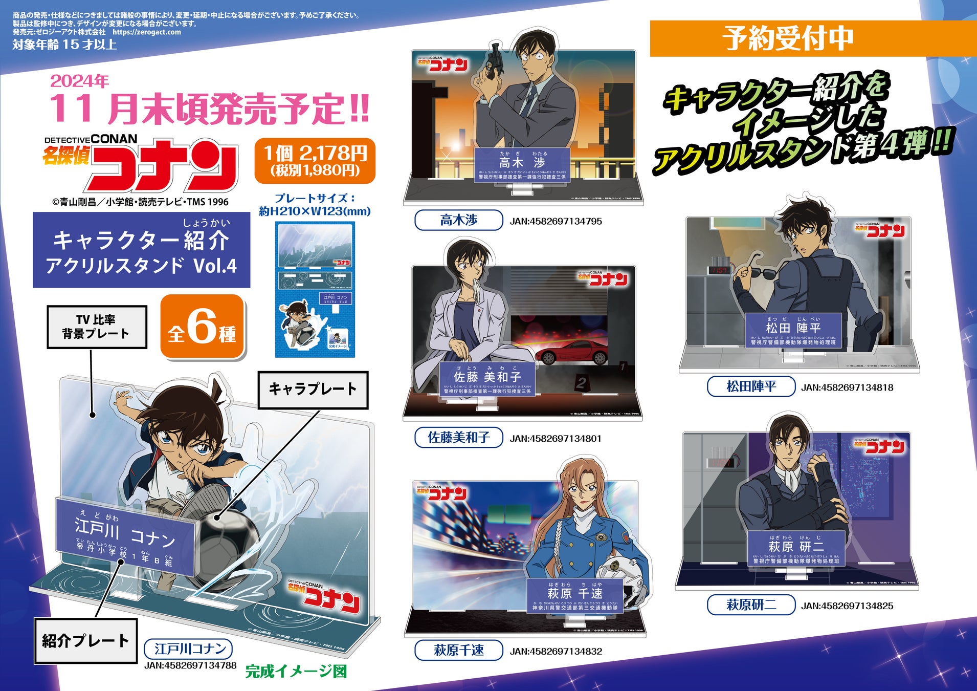 アニメ・キャラクター雑貨や、オリジナル商品の企画デザイン・製造販売を行うゼロジーアクト株式会社(本社:東京都台東区 ※朝日放送グループ)は、「名探偵コナン」より、キャラクター紹介アクリルスタンドVol.4の予約受付を開始した。
