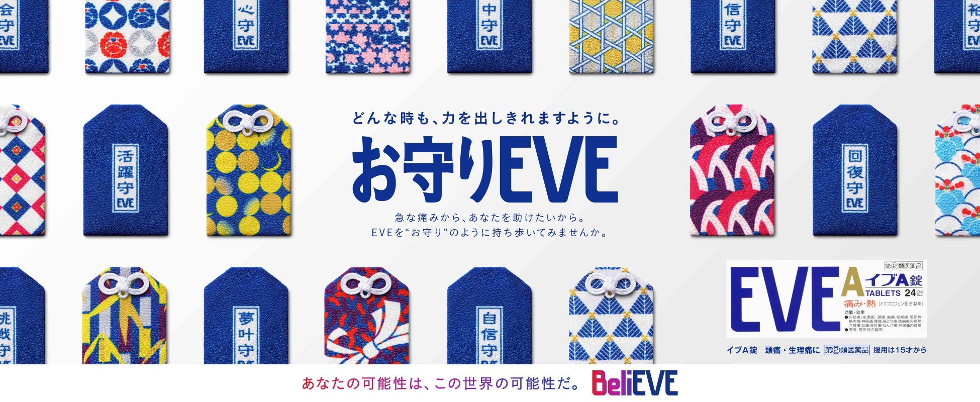 解熱鎮痛薬ブランドのEVE(イブ)は、夢に向かって頑張る人が、どんなときも痛みに邪魔されることなく、最大限に力を発揮してほしいと考えています。そんな思いから、2024年3月に始動した「お守りEVEキャンペーン」では、新生活に向けて頑張る大切な人にお守り型のミニポーチを無料で贈ることができるキャンペーンを実施しました。持ち運び用の布製「お守り型ミニポーチ」のほか、スマートフォン上で携帯する「デジタル版お守り」や、手作りの要素を加えた「部活お守り型ミニポーチキット」、「お守り折り紙」など、様々なバリエーションを持たせて活動を広げていきました。