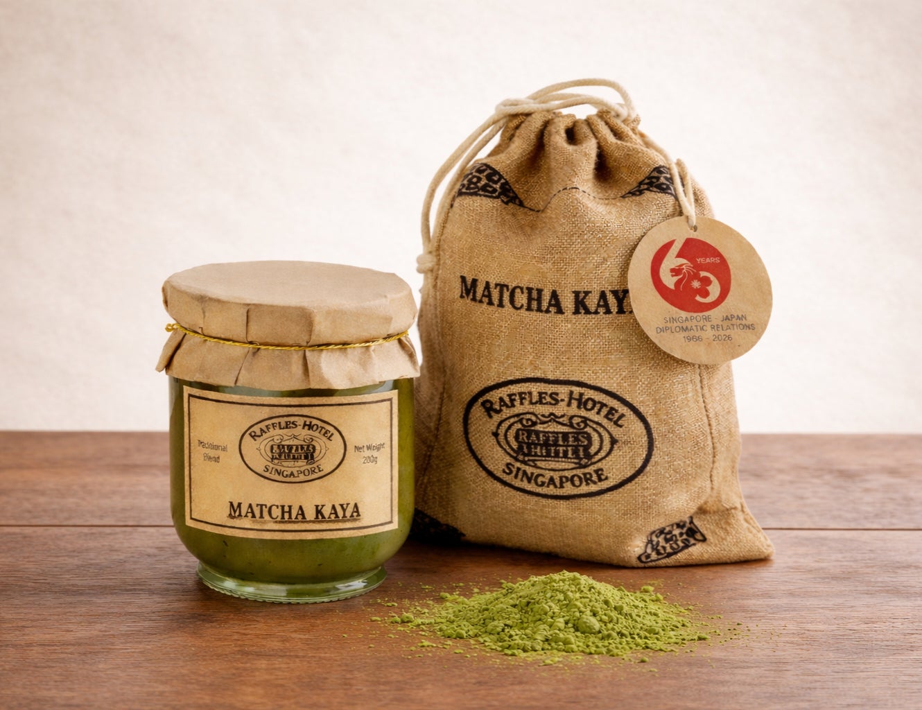 抹茶カヤは、パン、ビスケット、ワッフル、ペストリー、フレンチトースト、クレープ、クラッカーなどと相性抜群です。おなじみの麻袋に入った200gボトルで、価格は16シンガポールドル(税込み)です。抹茶カヤは、2026年4月1日よりラッフルズ・ブティックにて販売開始予定です。