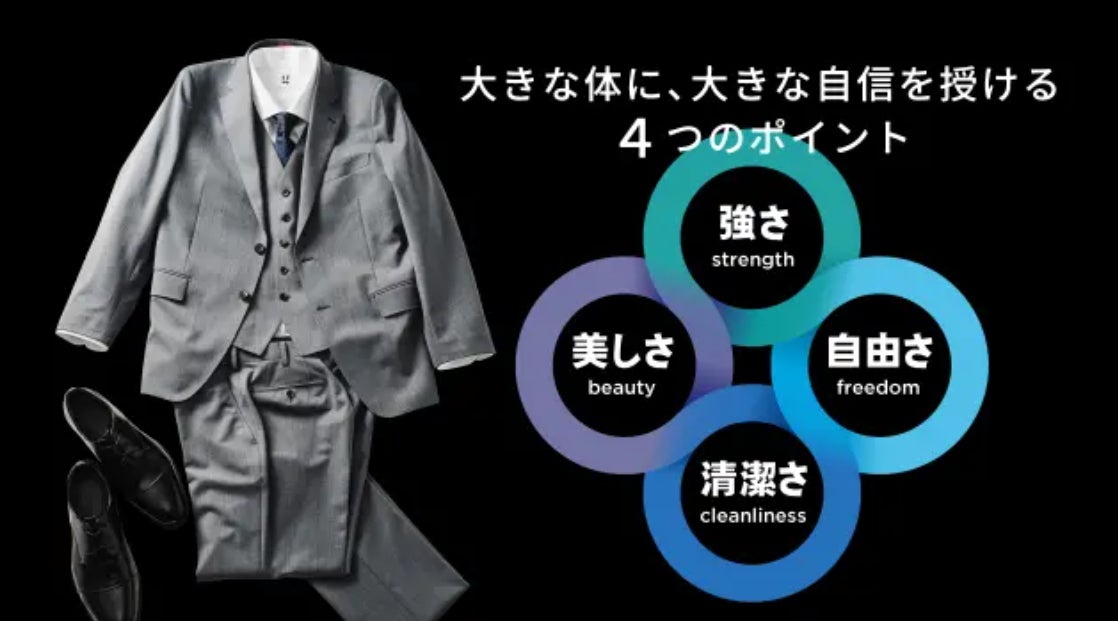 大柄な体格にぴったりのスーツがECサイトで購入可能に。初回登録特典もあり