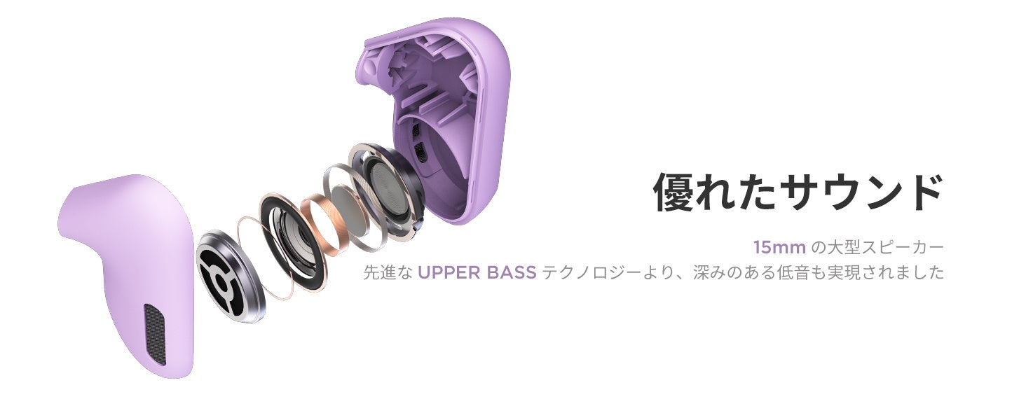 15mm大型スピーカーと高度なUPPER BASSテクノロジーにより、深みのある低音も実現されました。