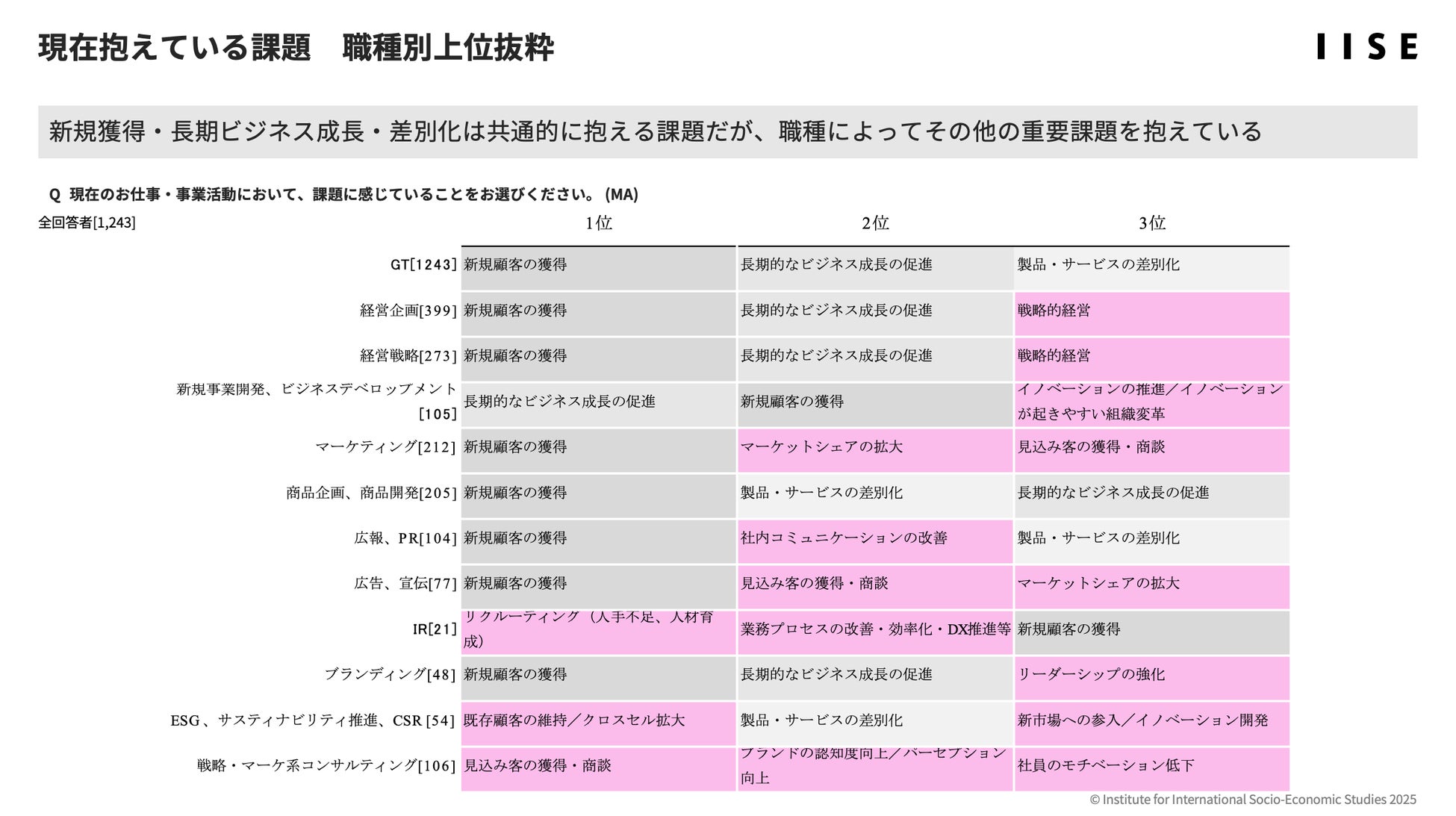 共通的に抱える課題とは別に、職種によってその他の重要課題を抱えているのがわかる