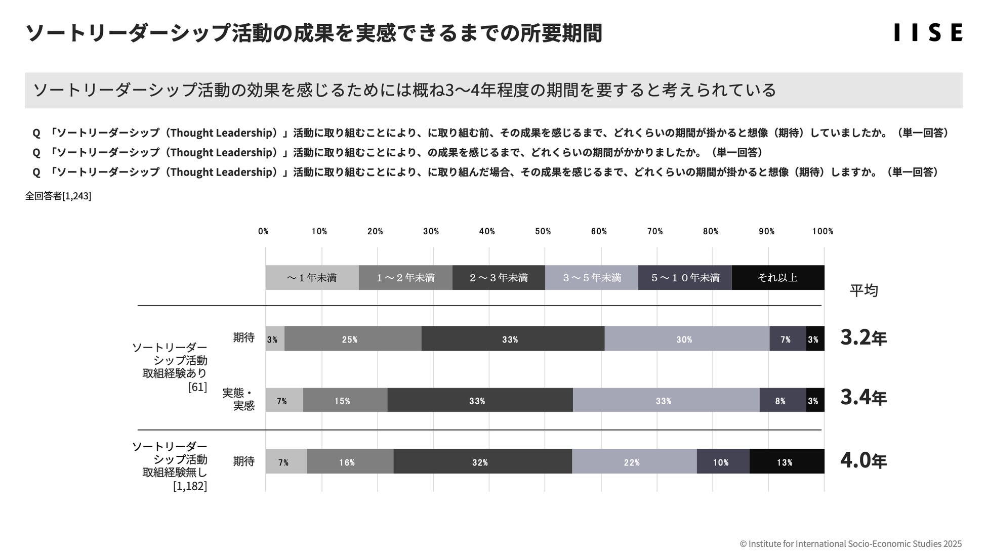 ソートリーダーシップ活動の効果を感じるためには「概ね3~4年程度」の期間を要する