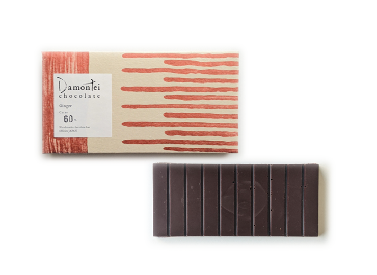 カリッとした砂糖漬け生姜の食感と、ショコラのまろやかさが調和する、すっきり軽やかな味わいのチョコレート。