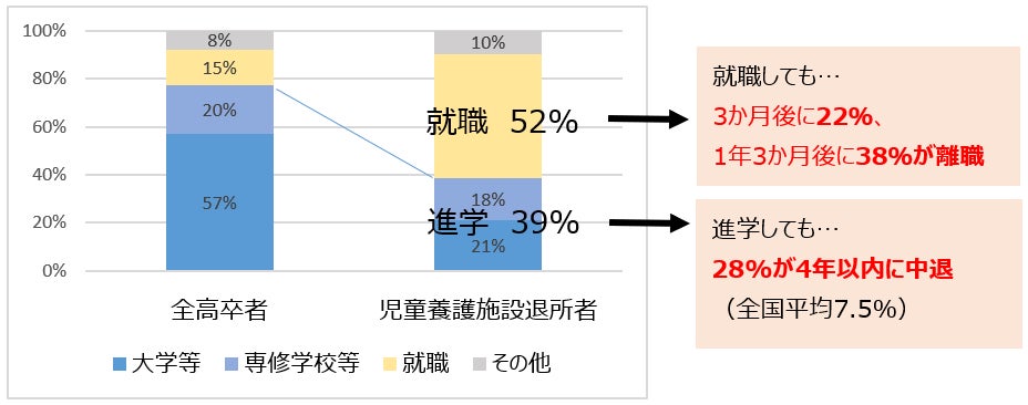 ほとんどの子どもが18歳で施設を出て自立をしますが、施設職員以外の頼れる大人の存在も、安定した金銭的基盤もありません。