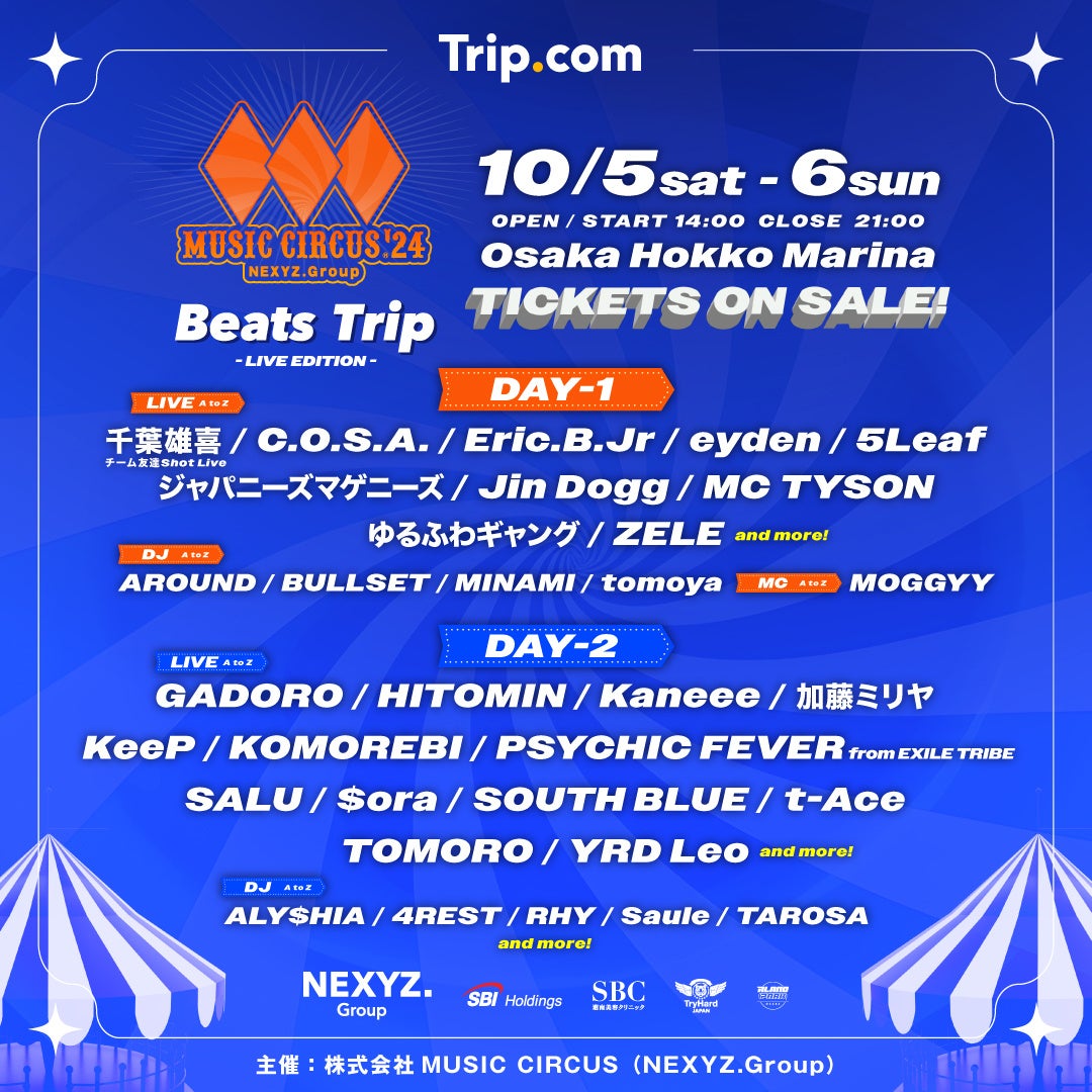株式会社MUSIC CIRCUS(所在地:東京都渋谷区)は、2024年10月5日(土)・6日(日)、大阪北港マリーナ (所在地:大阪市此花区)にて開催する、「MUSIC CIRCUS’24 LIVE EDITION」の第七弾出演アーティストを発表いたします。